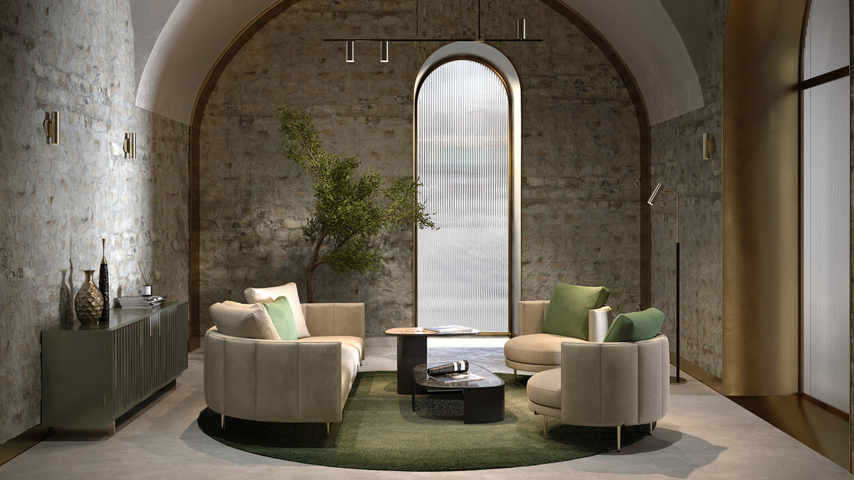 Центральной доминантой композиции стала арка, соединяющая прошлое и настоящее в едином пространстве.
