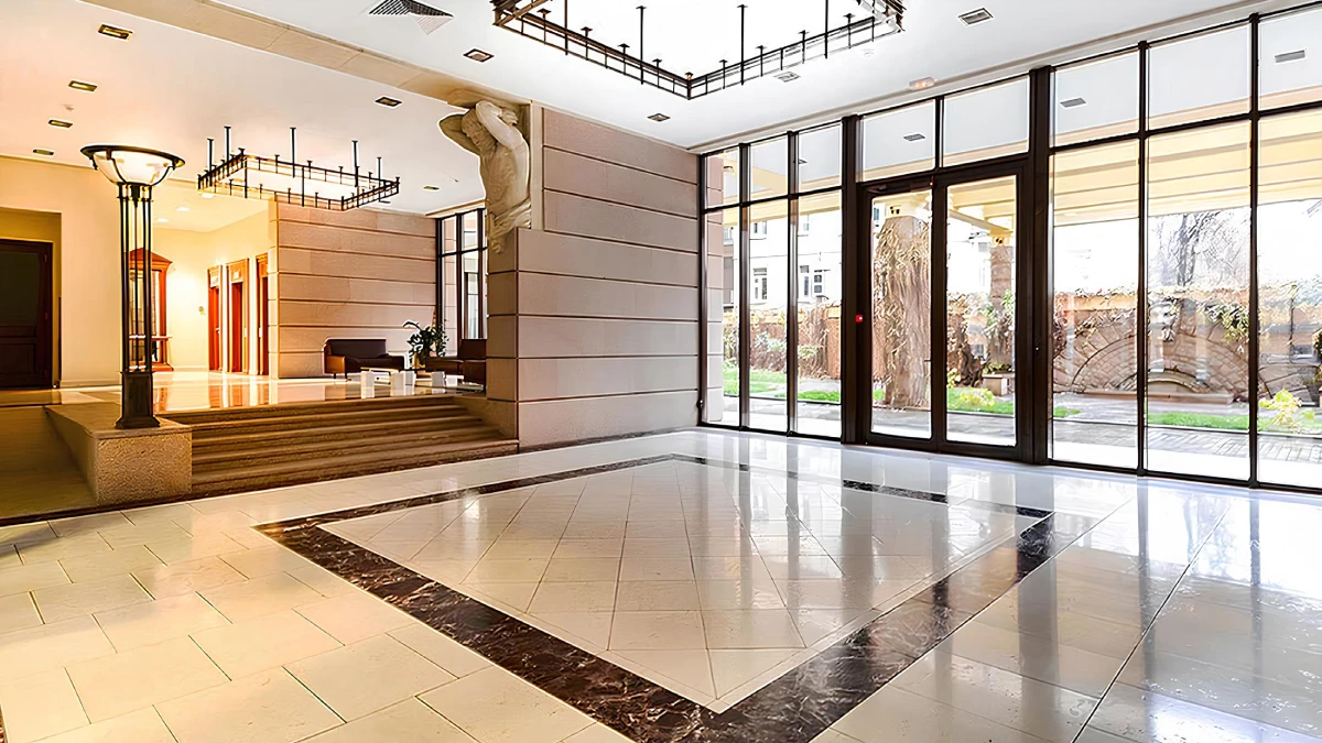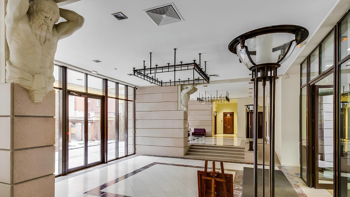 Представительные лобби дома выполнены в итальянском стиле с натуральной отделкой и зонами ожидания. Здесь работает консьерж-служба, организована пропускная система и круглосуточная охрана.