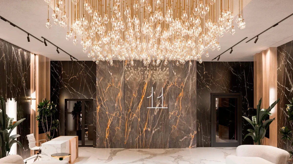 Лобби клубного дома встречает резидентов атмосферой изысканной роскоши. Пространство с потолками до 7 метров высотой впечатляет масштабом и элегантностью.