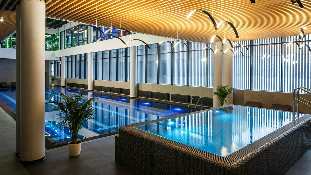 В комплексе открыт фитнес-центр с современными залами, 25-метровым бассейном и зоной SPA. Здесь можно начать день с тренировки, а завершить его – расслабляющим отдыхом в горячих ваннах.