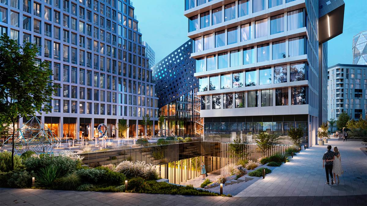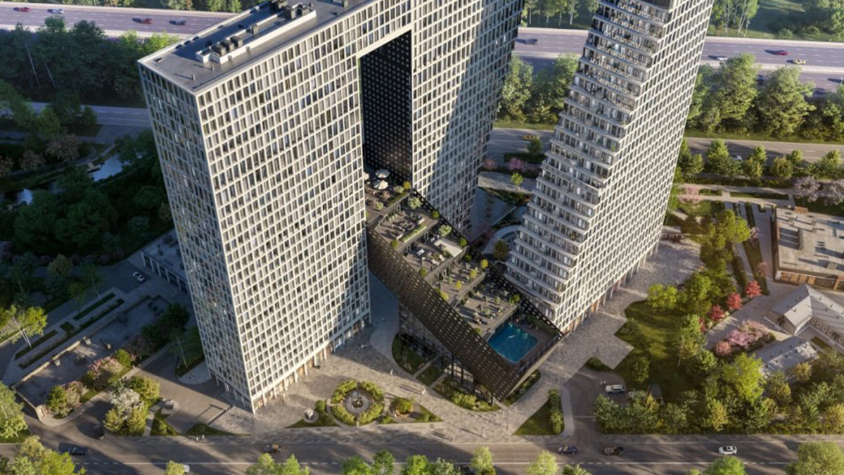 Комплекс выполнен в футуристической архитектуре от студии KAMEN и воспринимается как городская скульптура, интегрированная в ткань мегаполиса.