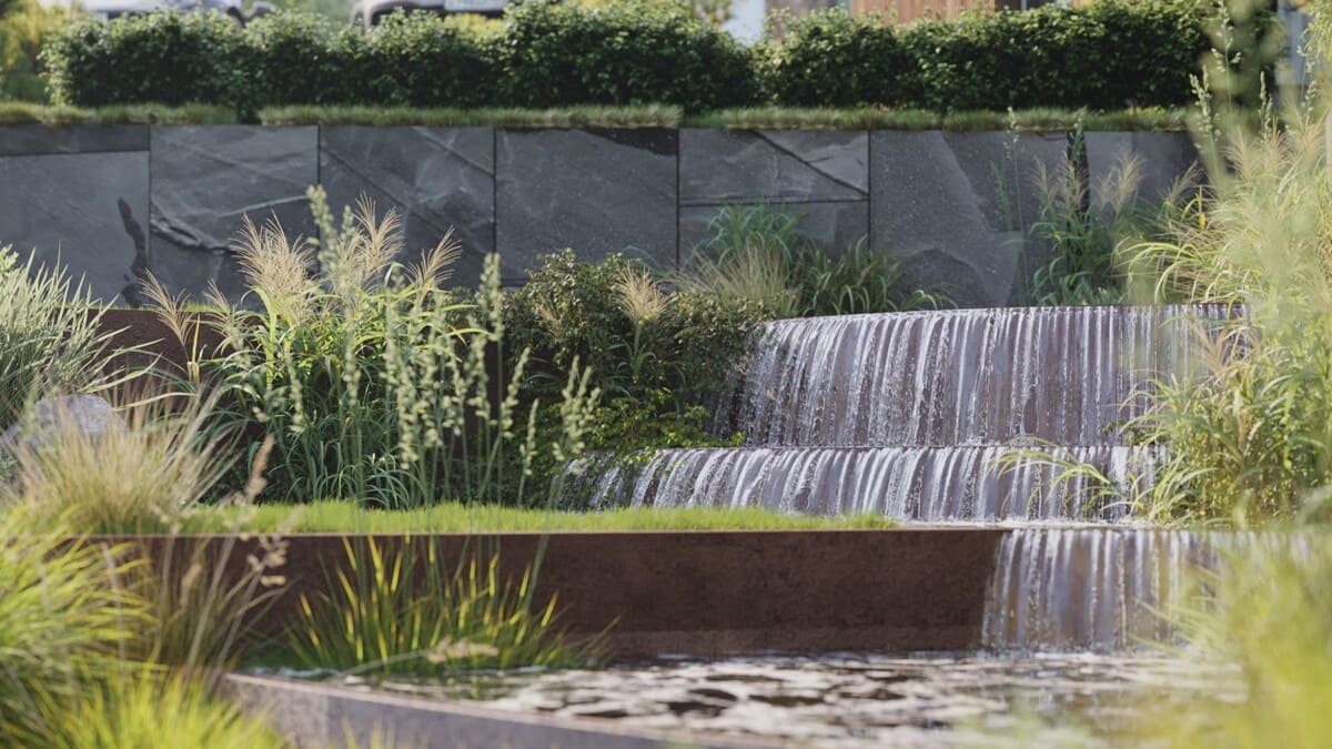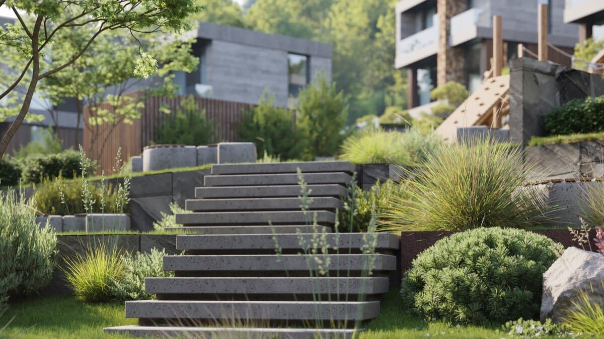 Ландшафтный дизайн ориентирован на сохранение природного рельефа и экологичный подход: многолетние растения, естественные материалы и ощущение полной гармонии с окружающей средой.