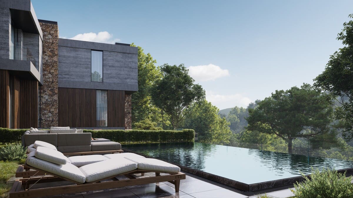 Уединённый ландшафт и захватывающие виды стали основой для создания 22 резиденций с просторными террасами, собственными бассейнами и парковками. Внутри – инфраструктура, созданная для отдыха и перезагрузки: лаунж-зоны, детская площадка, терренкур и площадка для занятий йогой.