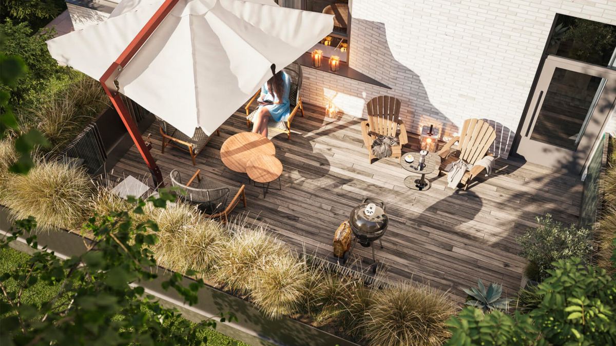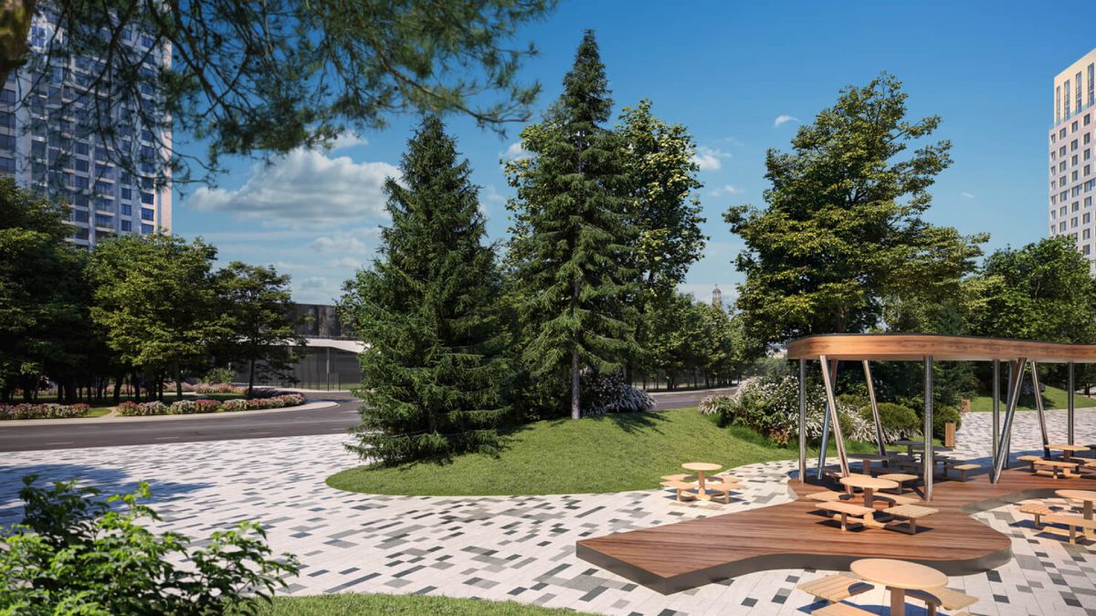 Foriver продуман до мелочей. В нём обустроен двор с газонами и прогулочными аллеями, видовыми площадками для отдыха с деревянными шезлонгами и перголами. Резиденты будут наслаждаться эффектной панорамой Москвы-реки с шестиметровой возвышенности стилобата.