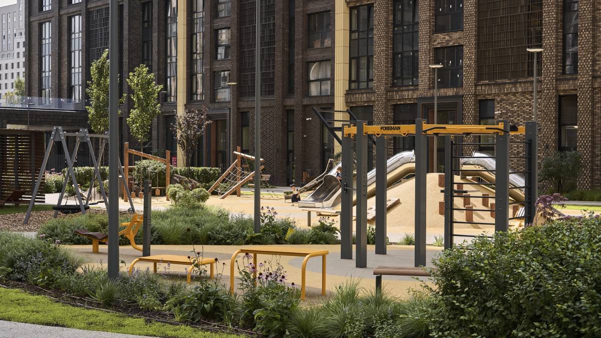 Для юных жителей в Foriver создана собственная инфраструктура, в том числе пять развивающих площадок в закрытом дворе.