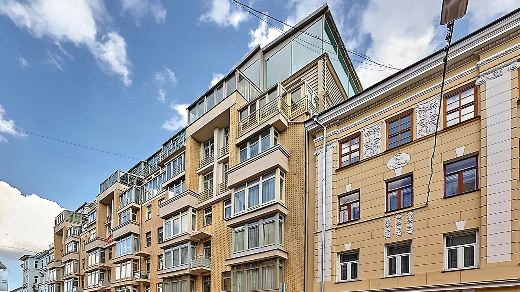 Архитектурной доминантой комплекса является роскошный пентхаус на верхнем этаже площадью 236 кв. м. Фасад цокольного этажа облицован благородным натуральным камнем, что сразу задает высокий статус здания. Благодаря расположению в сердце столицы, жители могут пешком дойти до Кремля и насладиться прогулками по знаменитым кварталам Чистых прудов.