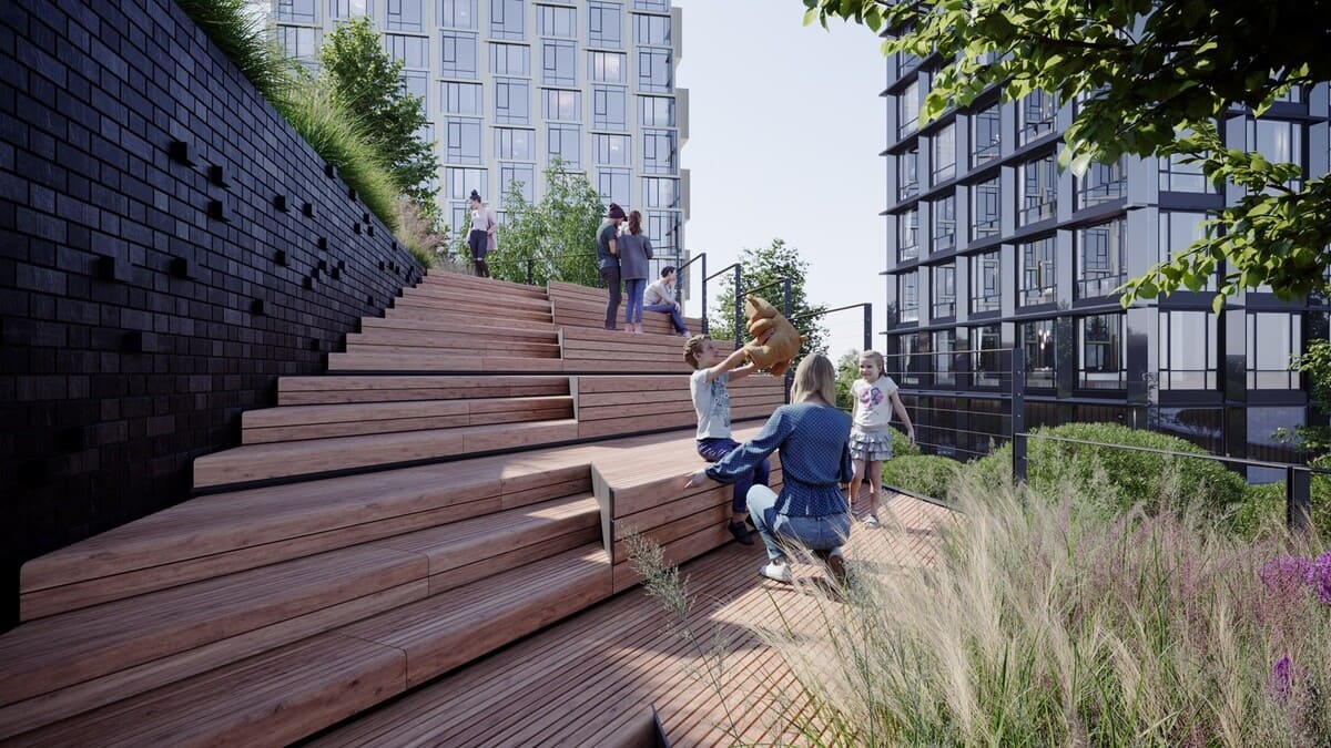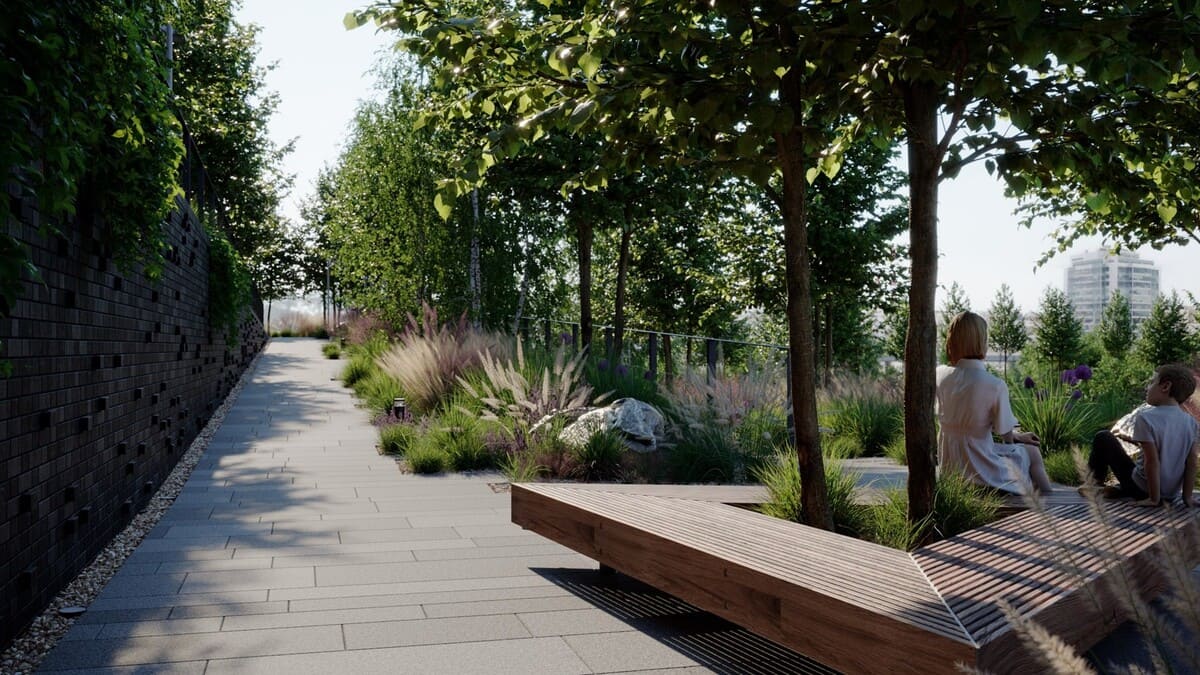 Созданы воркаут-пространства, зона для йоги, лужайки для выгула собак, тихие lounge-зоны и площадка для пикников. Все это – под надёжной защитой от ветра и городского шума.