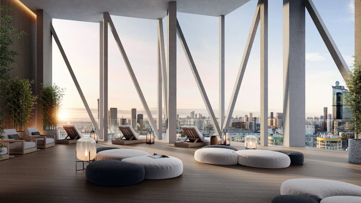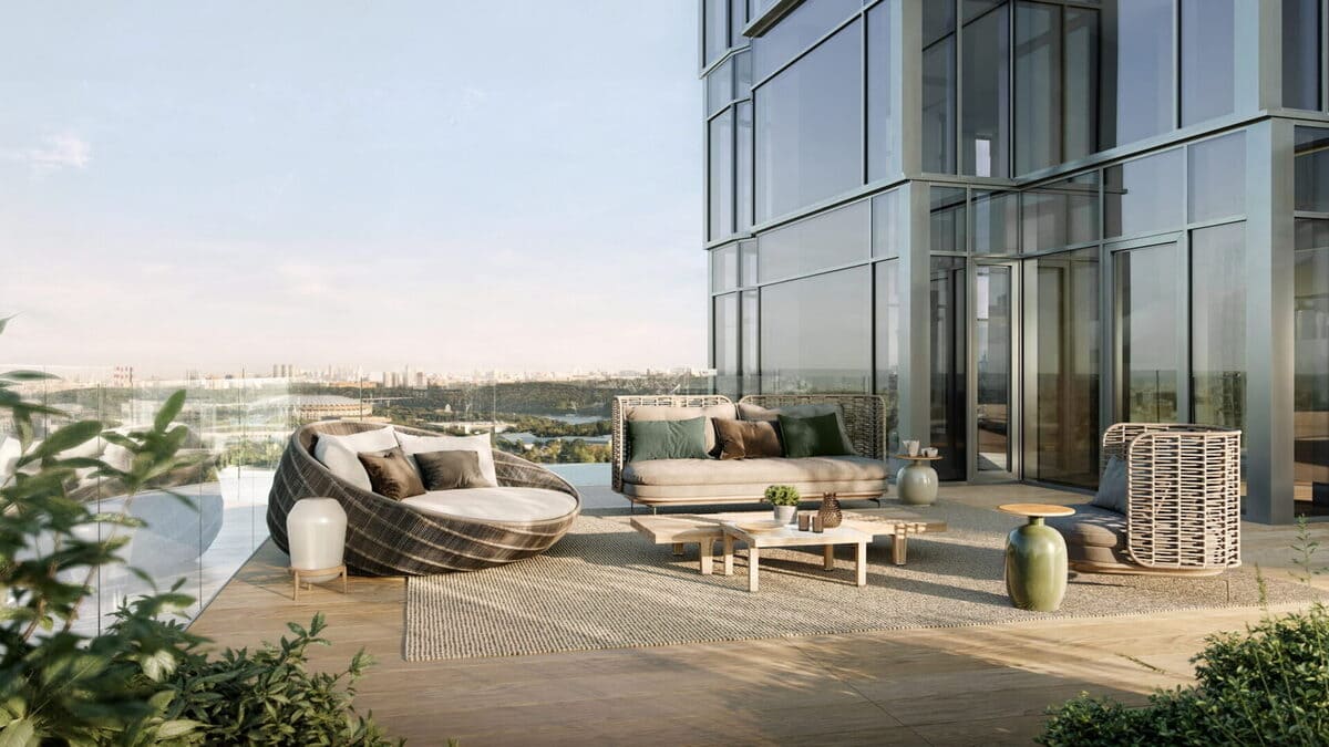 Особая категория – «парящие квартиры» с потолками 5,65 м и собственными террасами. Также доступны пентхаусы, лоты с патио и расширенными видовыми характеристиками.