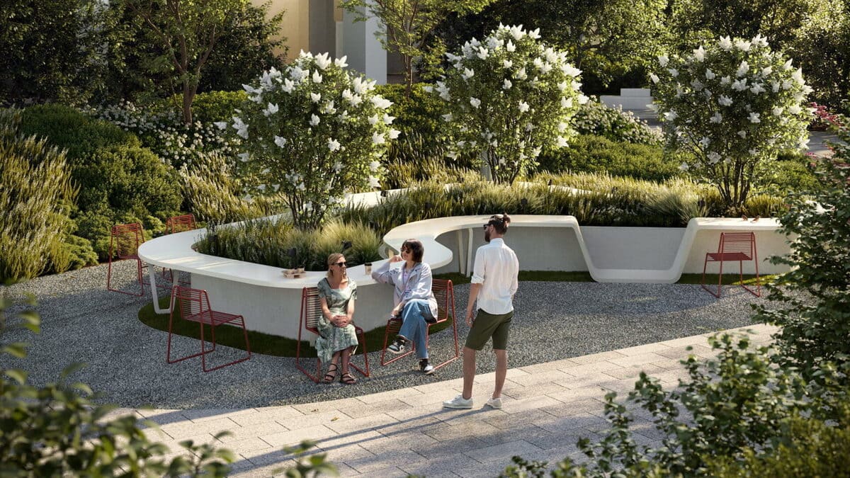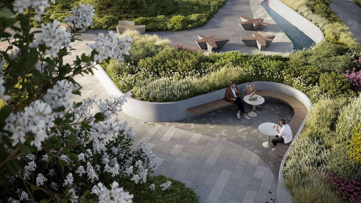 Зелёные аллеи, ландшафтные композиции, арт-объекты и приватные уголки для отдыха формируют атмосферу уединённого парка, который принадлежит только резидентам.
