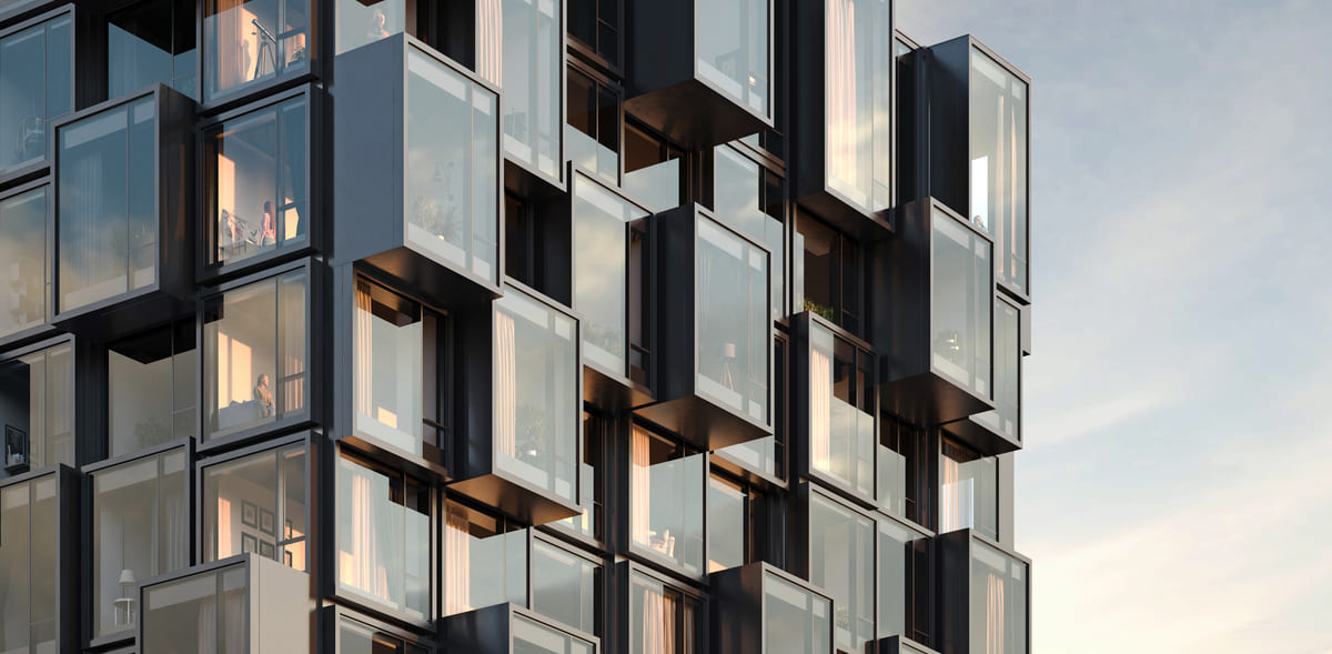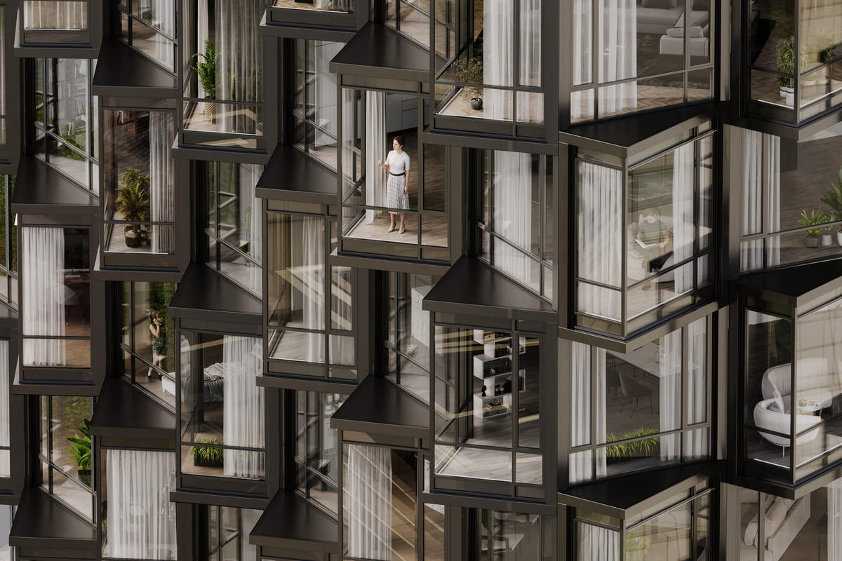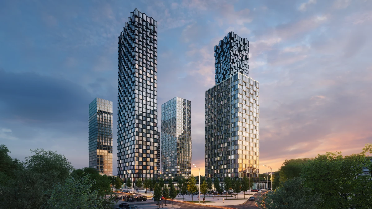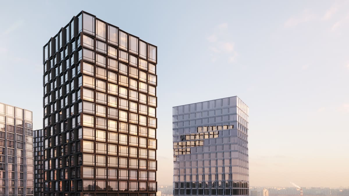 Форма каждой башни подчинена своему положению на участке и панорамам, которые открываются из окон. Фасады обрамлены панорамным остеклением, благодаря чему квартиры наполнены светом, а виды становятся полноценной частью интерьера.