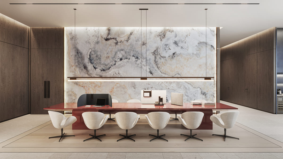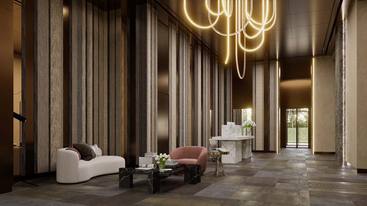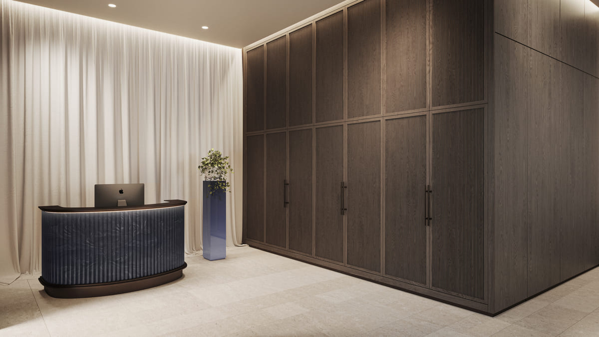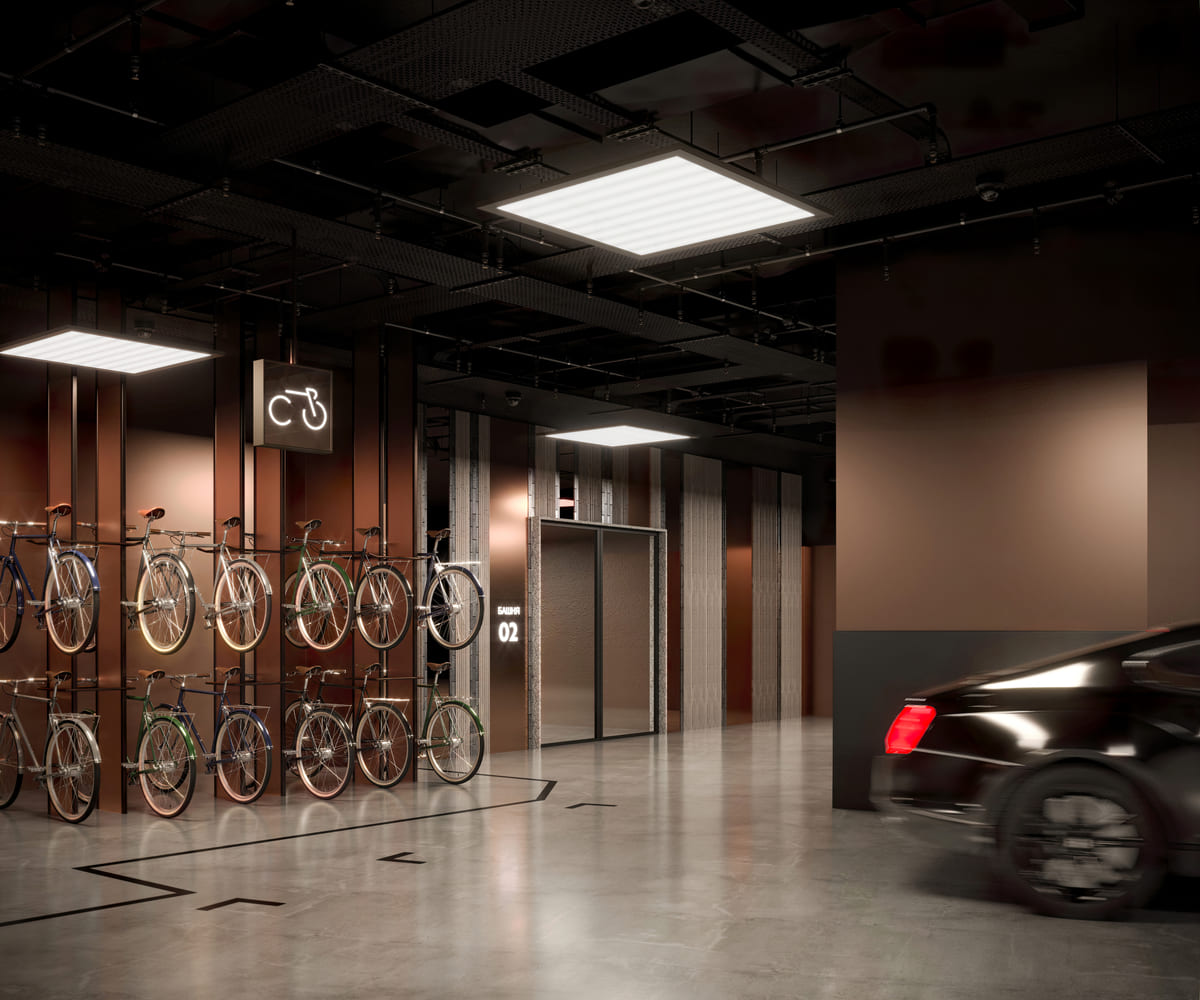 Входные группы оформлены Jaime Beriestain Studio – в авторской эстетике европейской сдержанности и функциональности. Высота потолков – 5,5 м, в интерьере – натуральные материалы, продуманное сценарное освещение, sound-дизайн, системы очистки воздуха.