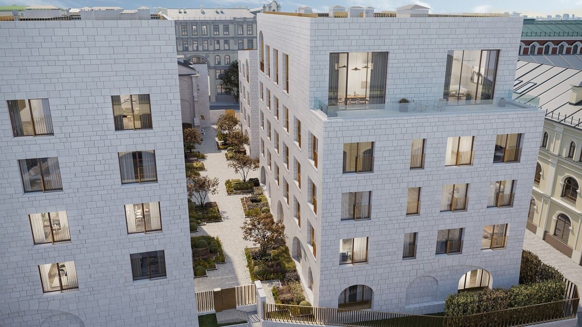 Проект представляет 7 утончённых особняков, воплощающих синергию истории и современности. 3 здания – бережно реконструированные памятники архитектуры XIX века, 4 – новые особняки, созданные в изящной стилистике московского неорусского направления.