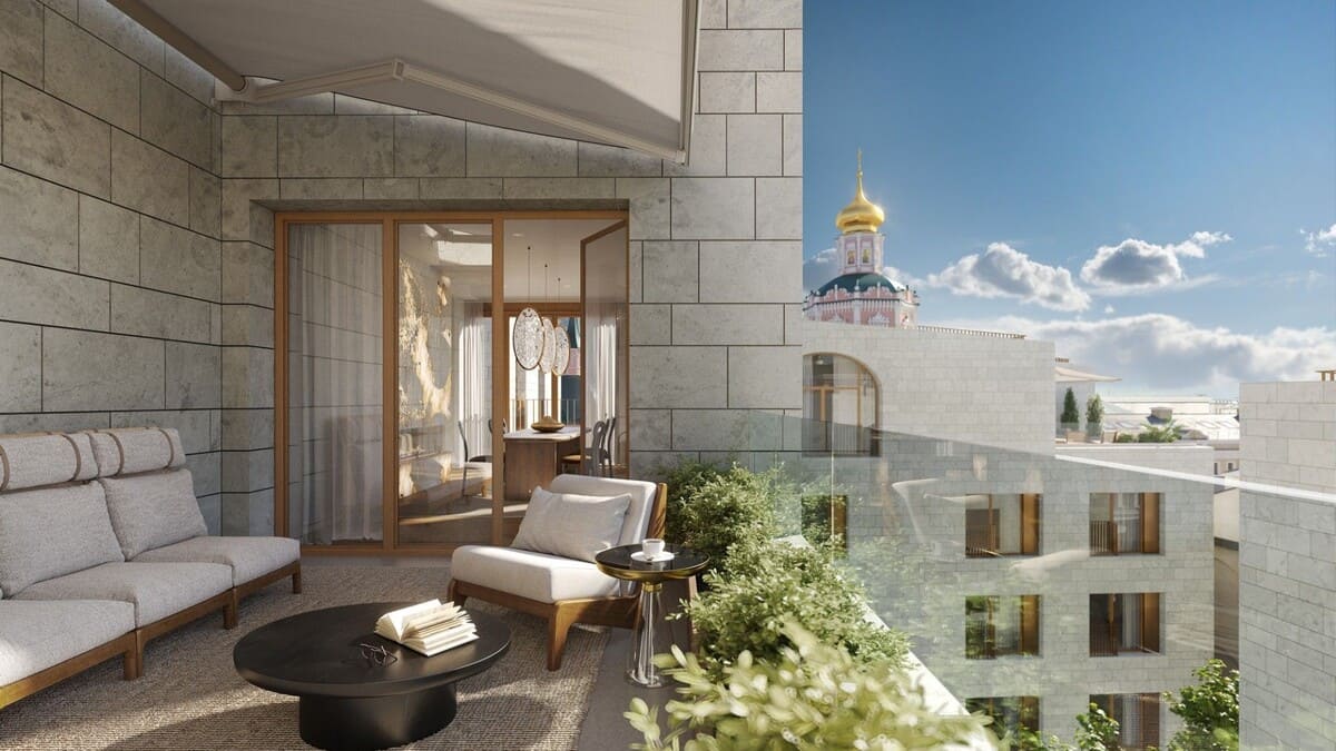- Пентхаусы с каминами, просторными террасами и панорамными видами на Кремль и Собор Василия Блаженного.