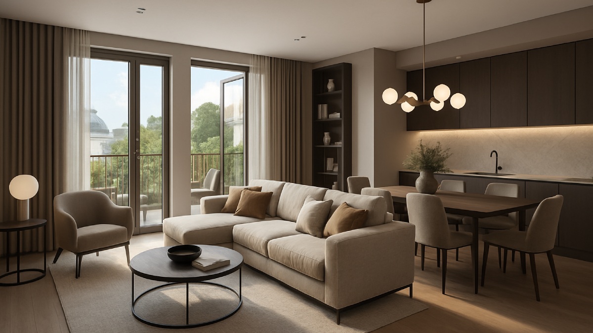 Классические лоты начинаются от 70 м² и отличаются эргономичными планировками, панорамным остеклением и потолками высотой 3,4 м, создающими атмосферу света и простора.