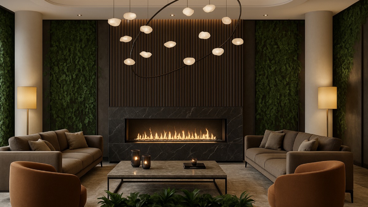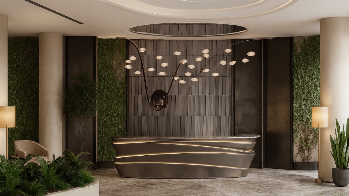 В лобби расположены стойка ресепшена с консьержем, lounge-зоны для резидентов и гостей, а также каминная зона.