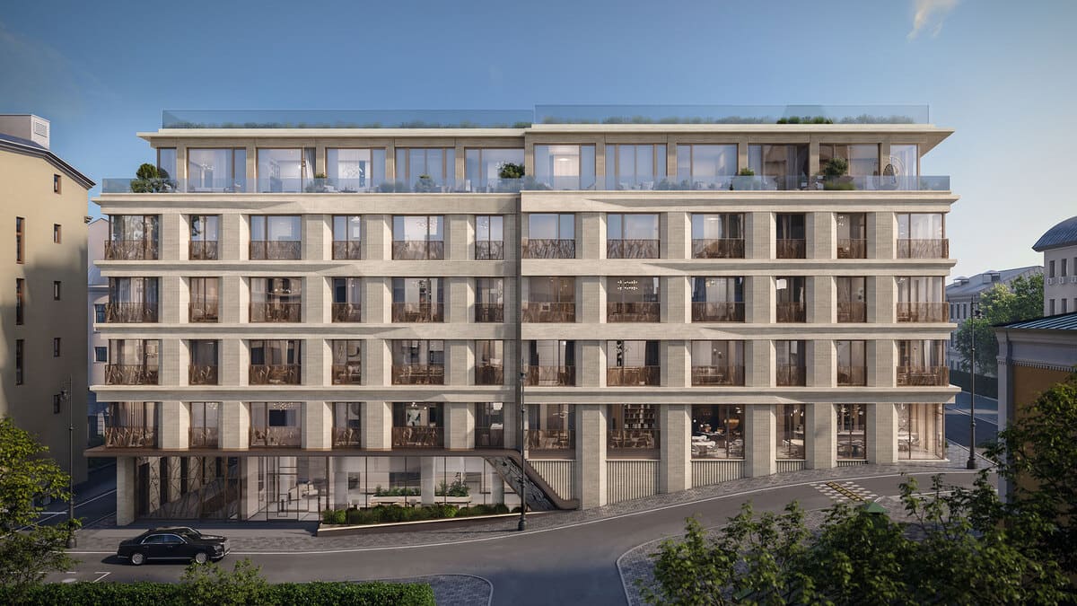 Концепция объединяет гармонию архитектуры от бюро Ginzburg Architects, премиальную инфраструктуру, изысканные общественные пространства, включая оранжерею и лобби с камином.