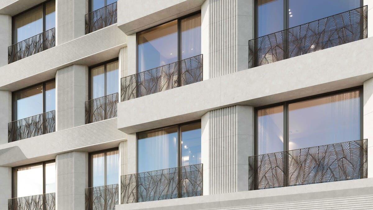 Французские балконы с ажурными ограждениями и панорамные окна наполняют квартиры светом и открывают виды на зелёные пространства Хамовников. Этот приём отсылает к идеям архитекторов XX века, стремившихся соединить урбанистику и природу.