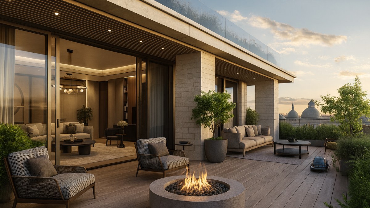 Для тех, кто ищет абсолютное совершенство, предлагаются пентхаусы площадью от 414 м² с мастер-спальнями, гардеробными и ванными комнатами, дровяными каминами и просторными террасами с панорамными видами на город. Потолки в пентхаусах достигают 3,8 м, что придаёт пространству особую выразительность.