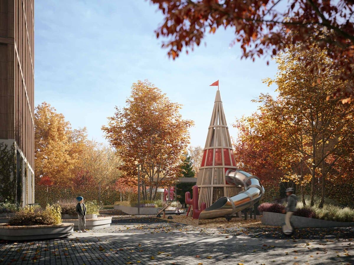 Детская и спортивная площадки спроектированы студией WOWHAUS на основе социокультурных исследований, что делает общественные зоны не просто функциональными, а по-настоящему живыми и нужными.