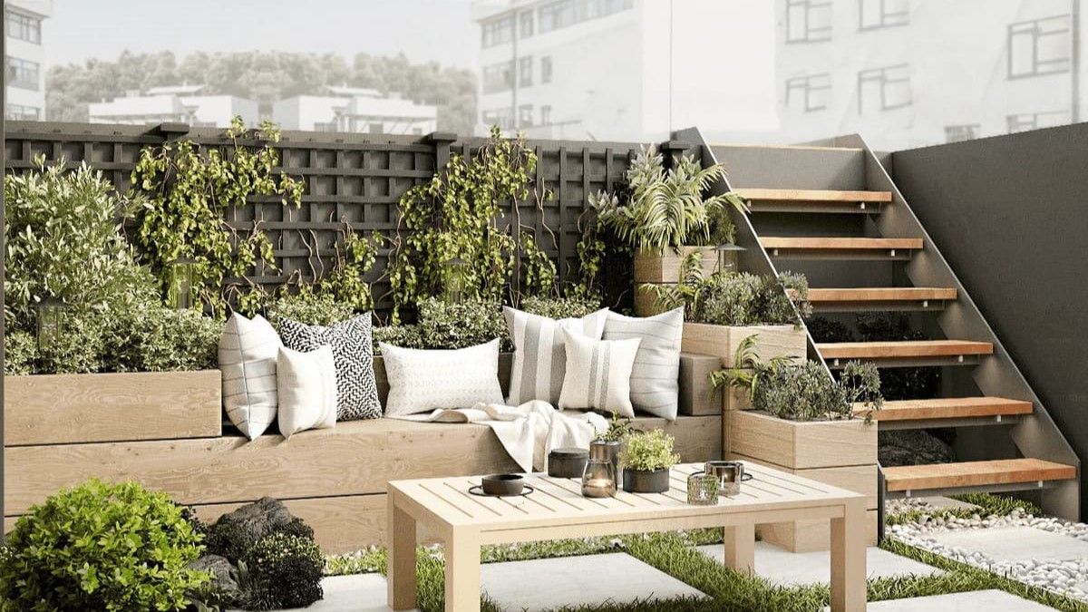 Апартаменты первого уровня имеют собственные дворики, где можно обустроить зону отдыха или тренажёры под открытым небом.