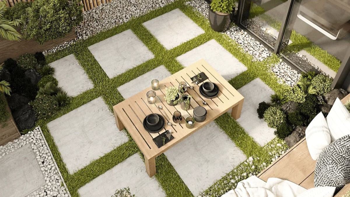 Каждая резиденция имеет собственный дворик со стеклянными перегородками и отдельным входом с улицы, расширяя жилое пространство.