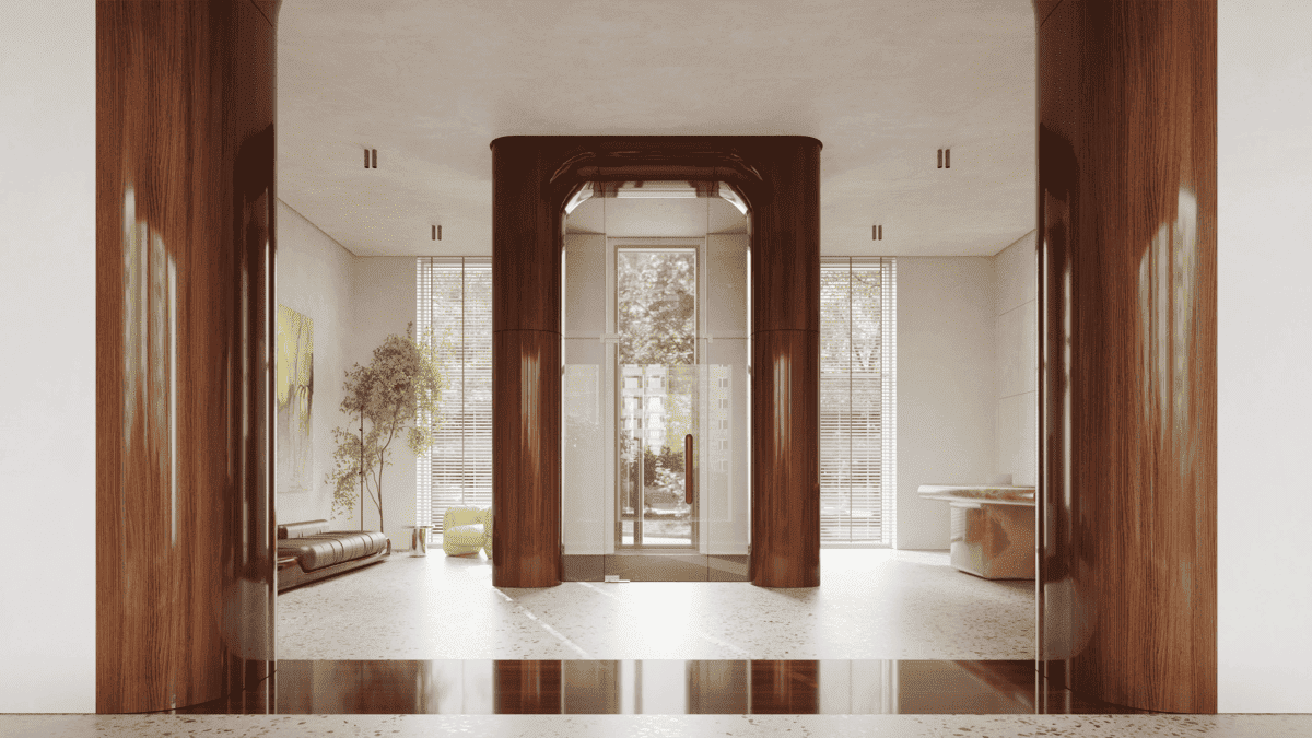 Интерьеры входной группы разработаны бюро EDXXKAT и воплощают концепцию дизайнерского арт-пространства.