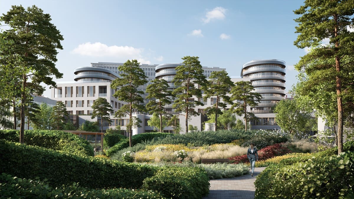 Клубная инфраструктура только для жителей – Clubhouse с клубной гостиной, детским игровым клубом и фитнесом с бассейном. Единый ансамбль элегантных зданий и витражного парка. Виллы, ситихаусы и пентхаусы.
