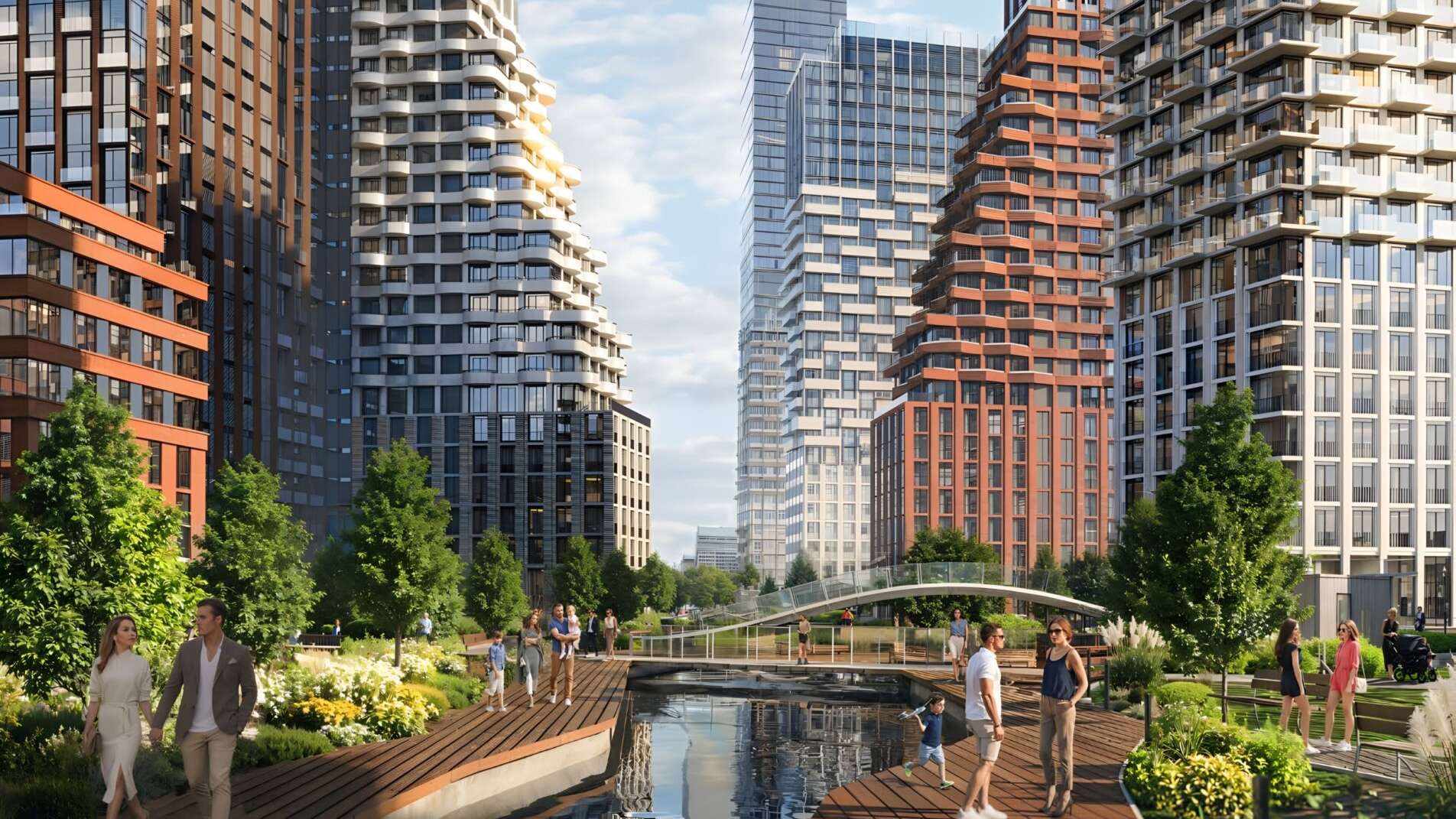 Комплекс включает корпусы разной этажности — от 6 до 39 этажей, предлагая покупателям как классические квартиры, так и пентхаусы. Территория квартала составляет 10,6 гектара, из которых более 3 га занято собственным внутренним парком с зонами для отдыха и прогулок.