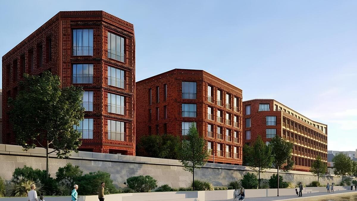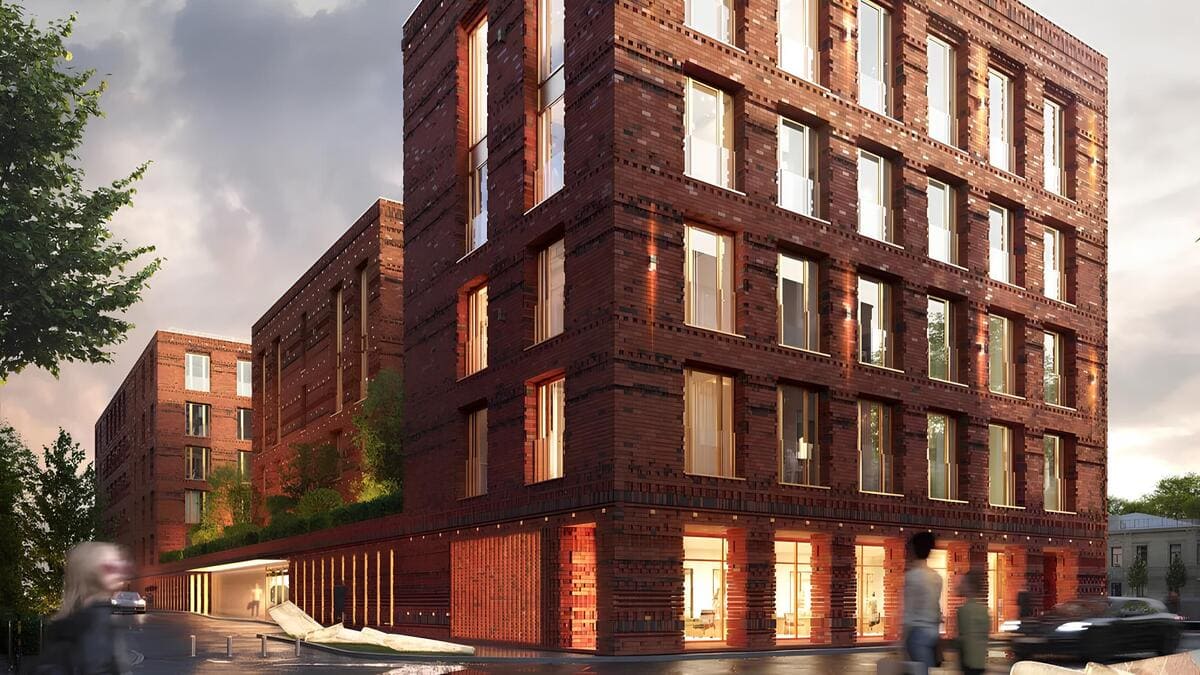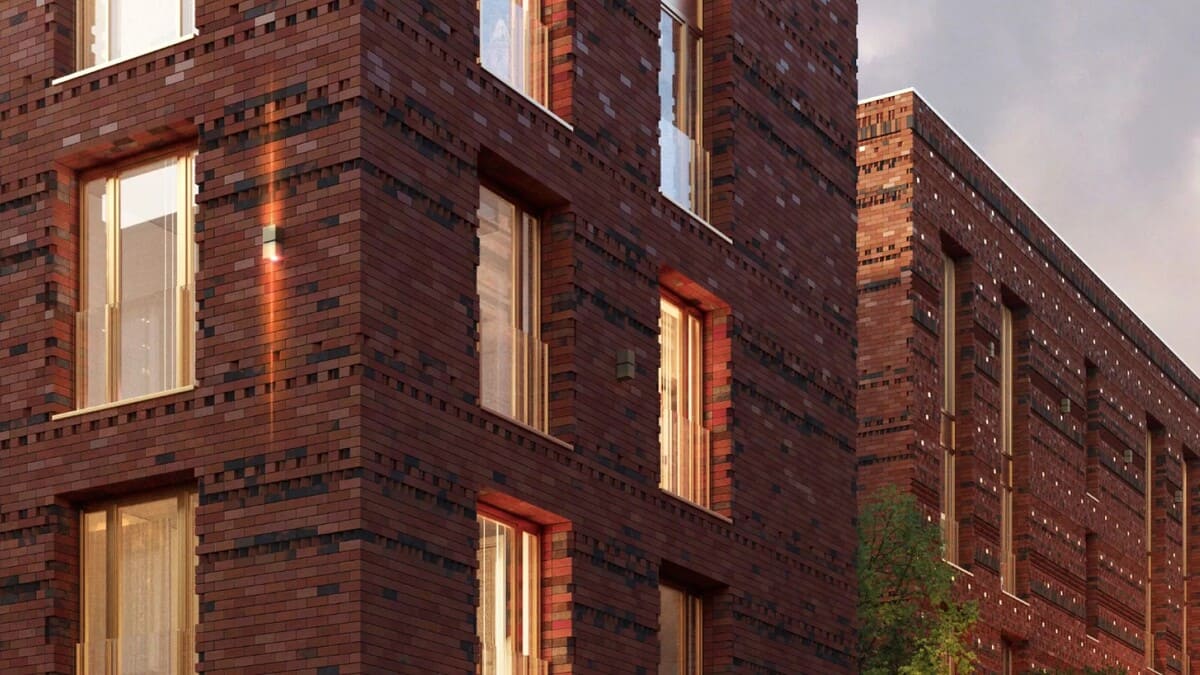 Ключевая особенность проекта – фасады из красного клинкерного кирпича, созданного на заказ в Германии. Каждый корпус украшен индивидуальными орнаментами, превращающими здания в настоящие архитектурные произведения.