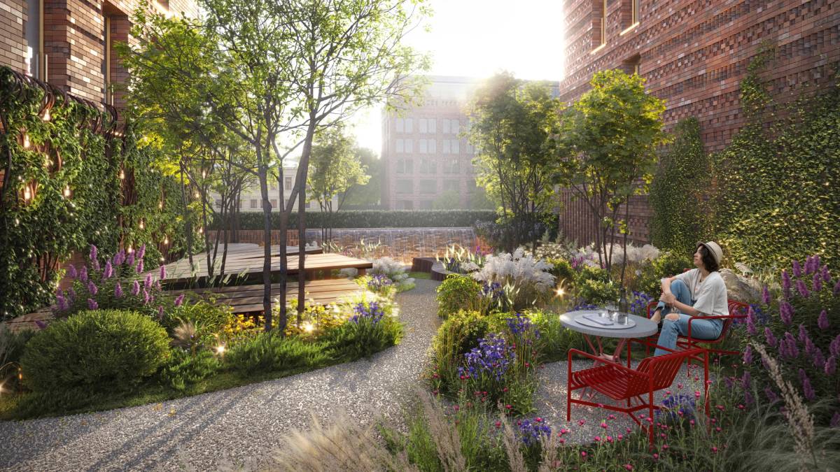 Жители смогут попасть в закрытый сад прямо из гранд-лобби через стеклянную галерею, что подчёркивает клубный характер проекта и заботу о приватности.