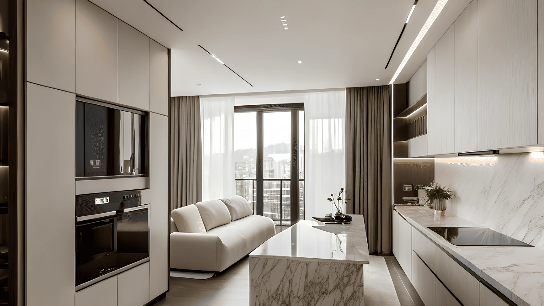 Планировки отличаются продуманной эргономикой и возможностью организации гардеробных зон. Некоторые квартиры имеют панорамные террасы с видами на город. Высокие потолки до 3,3 метра и панорамное остекление создают ощущение простора и светлое пространство.