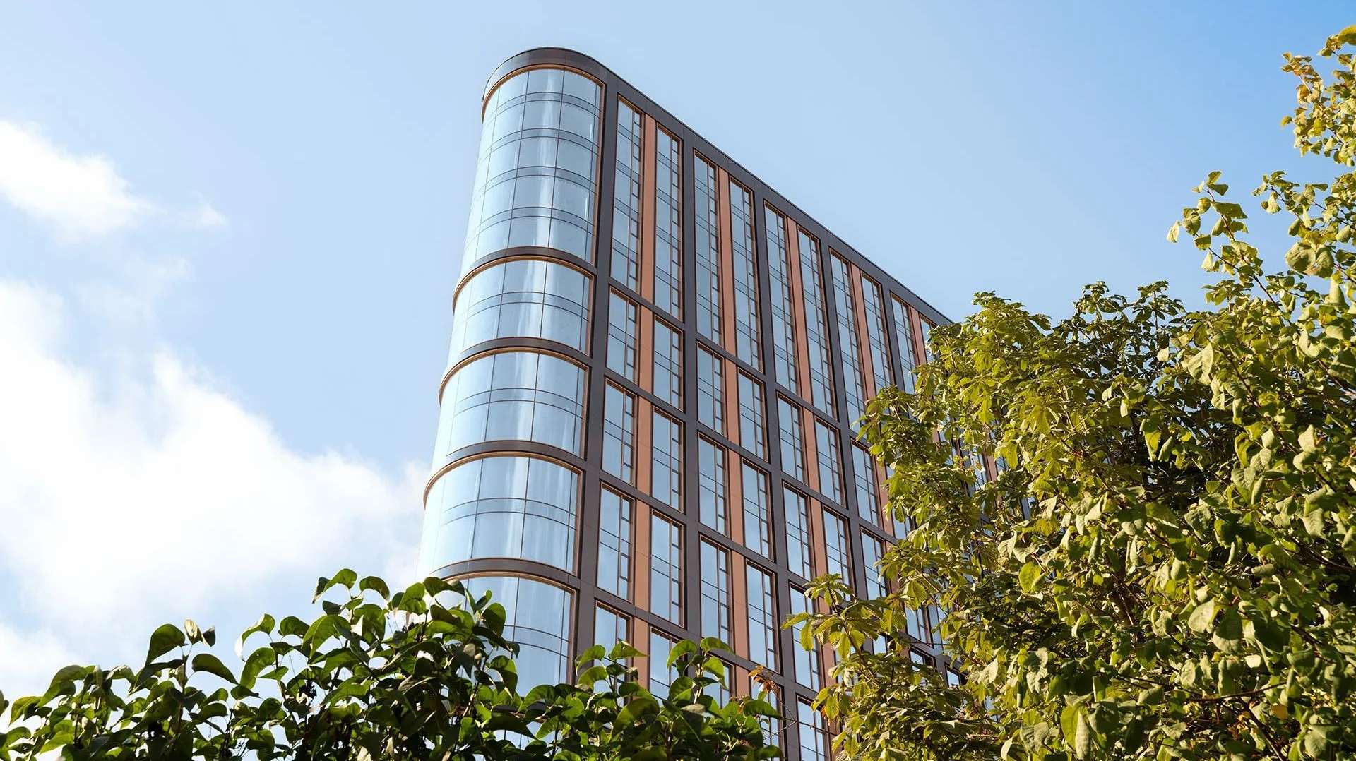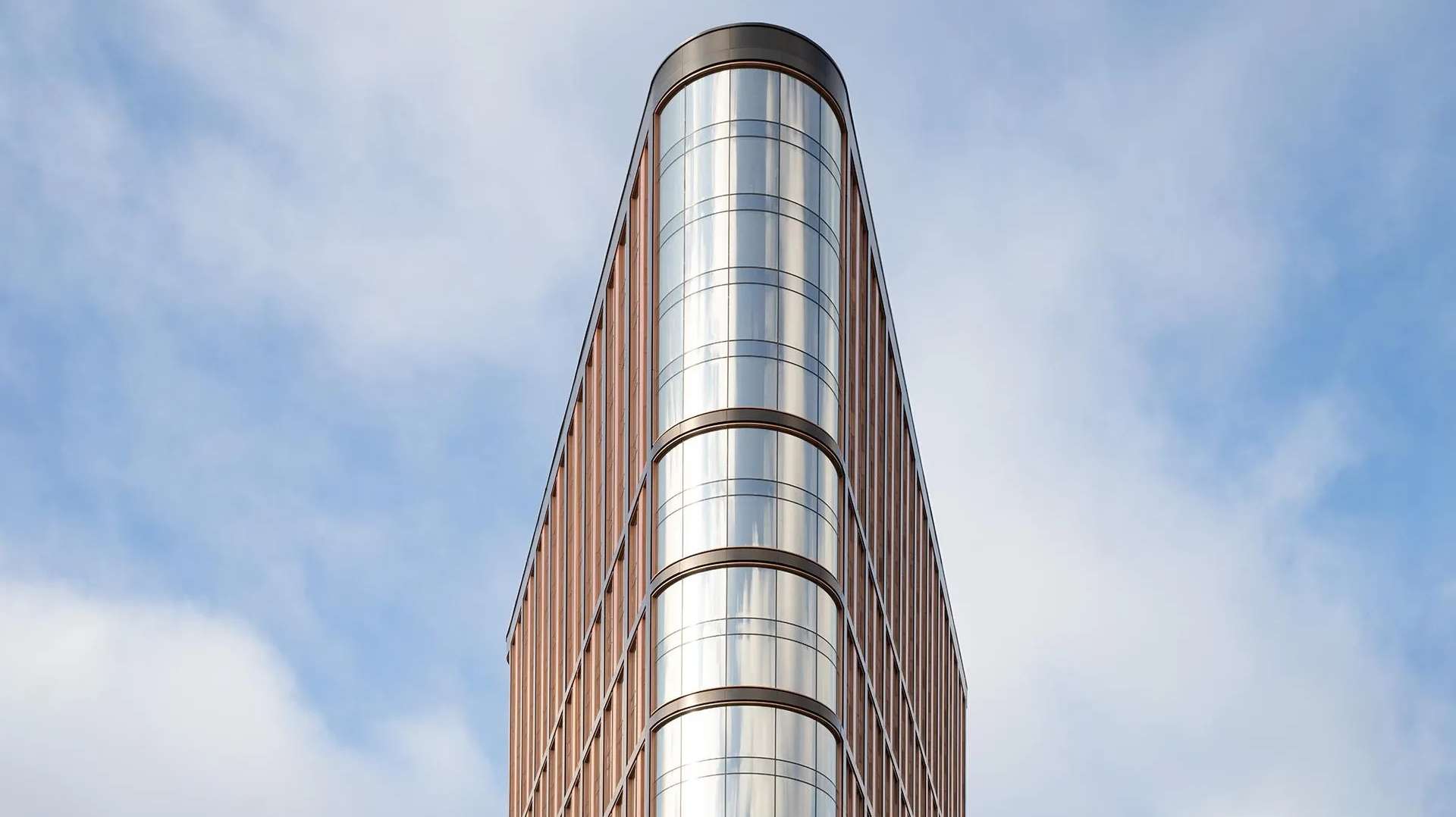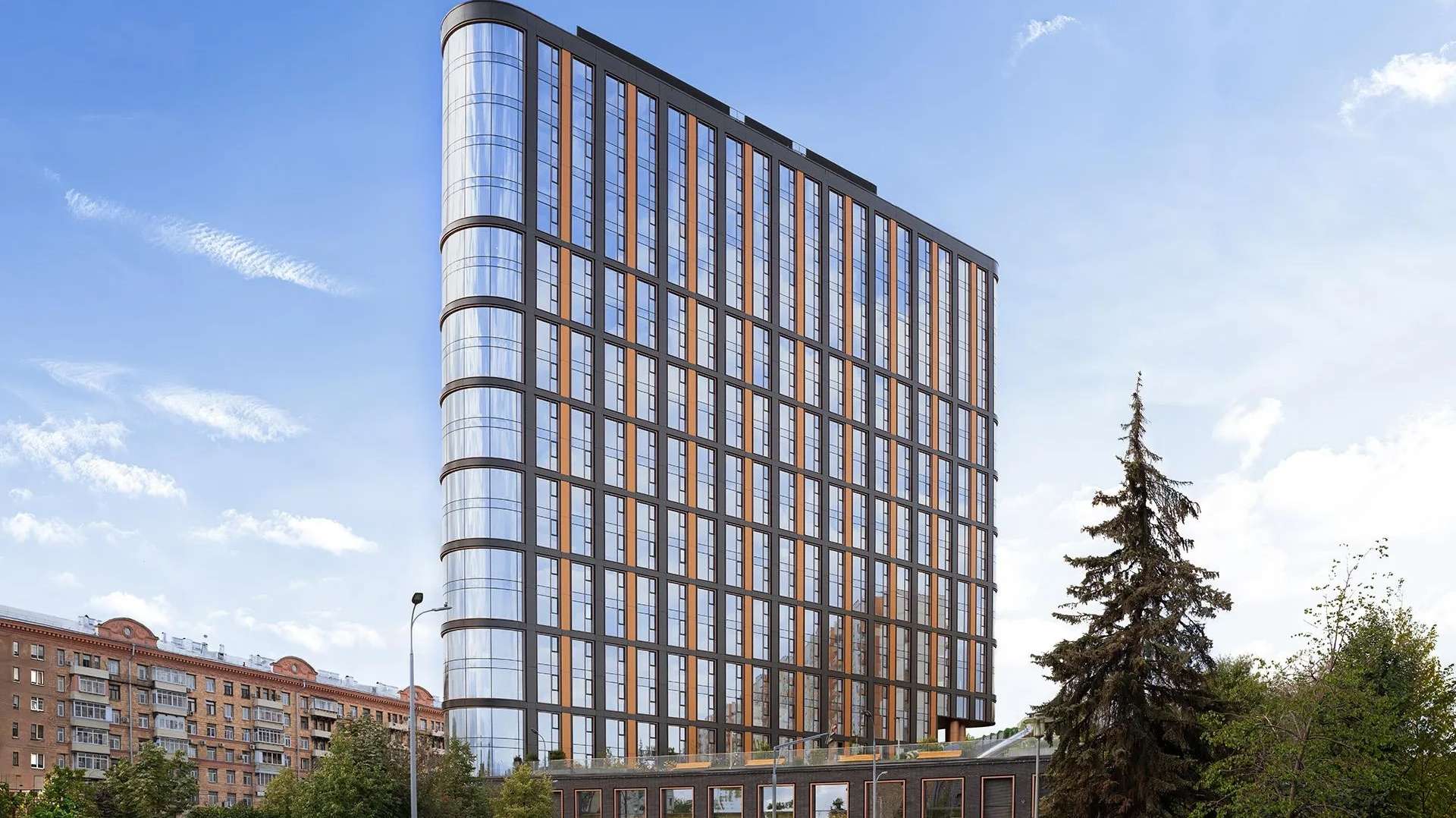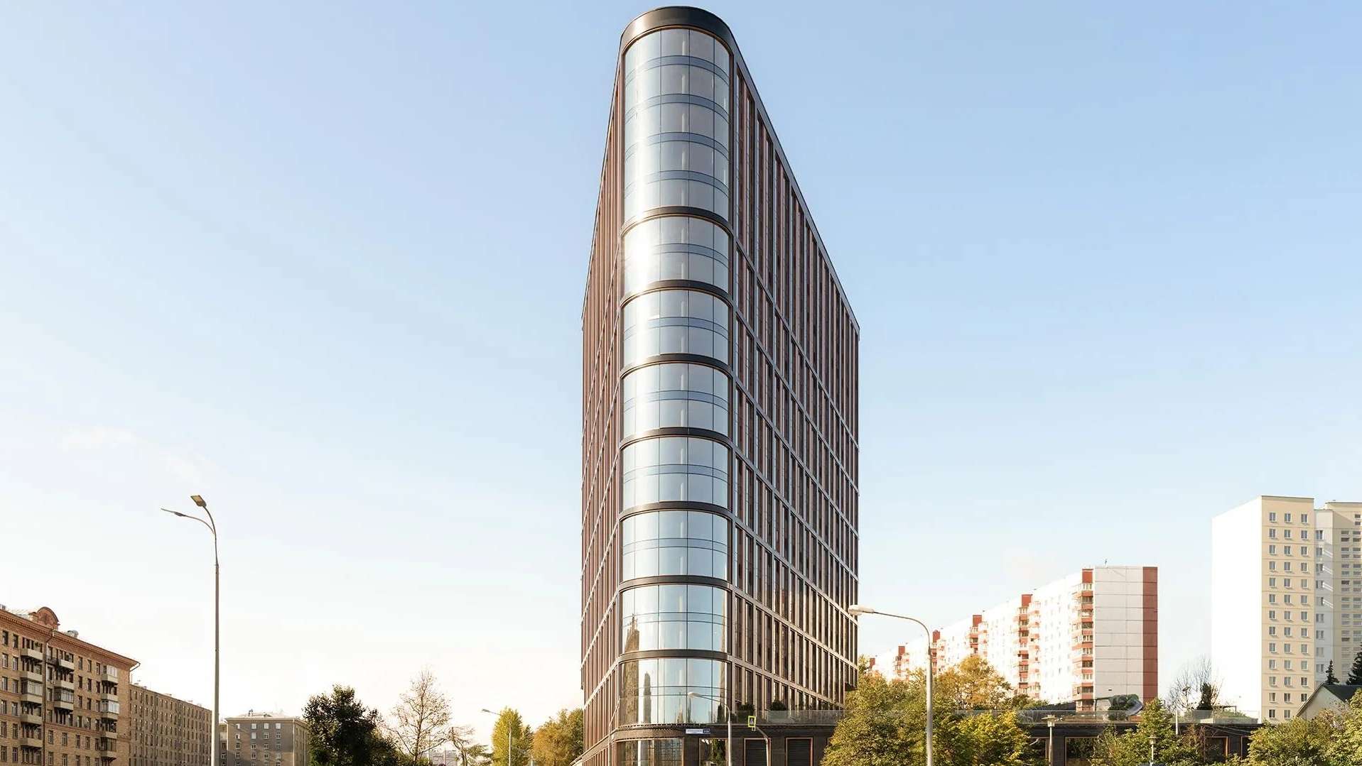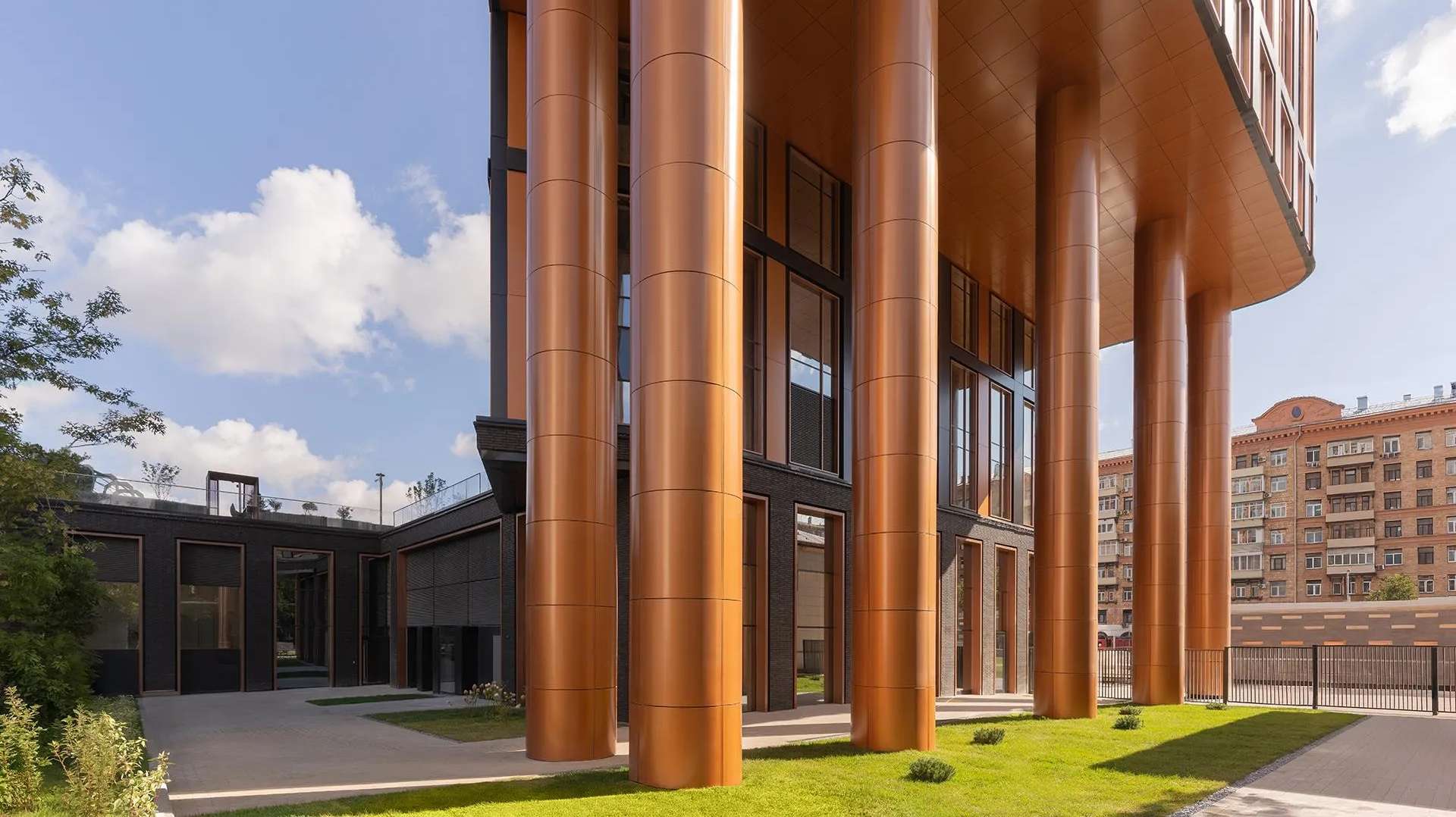 Автором архитектурного облика выступило известное бюро UNK project, создавшее по-настоящему запоминающийся силуэт. Фасады здания облицованы клинкерным кирпичом и алюминиевыми панелями в металлических и графитовых оттенках, что придает зданию строгости.