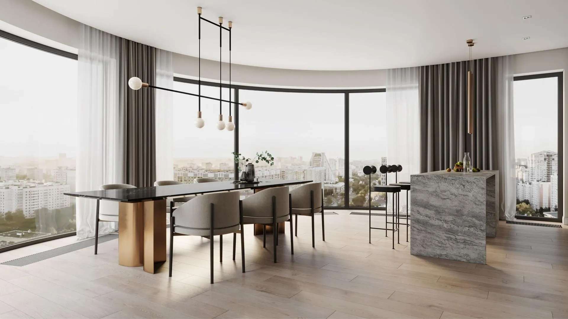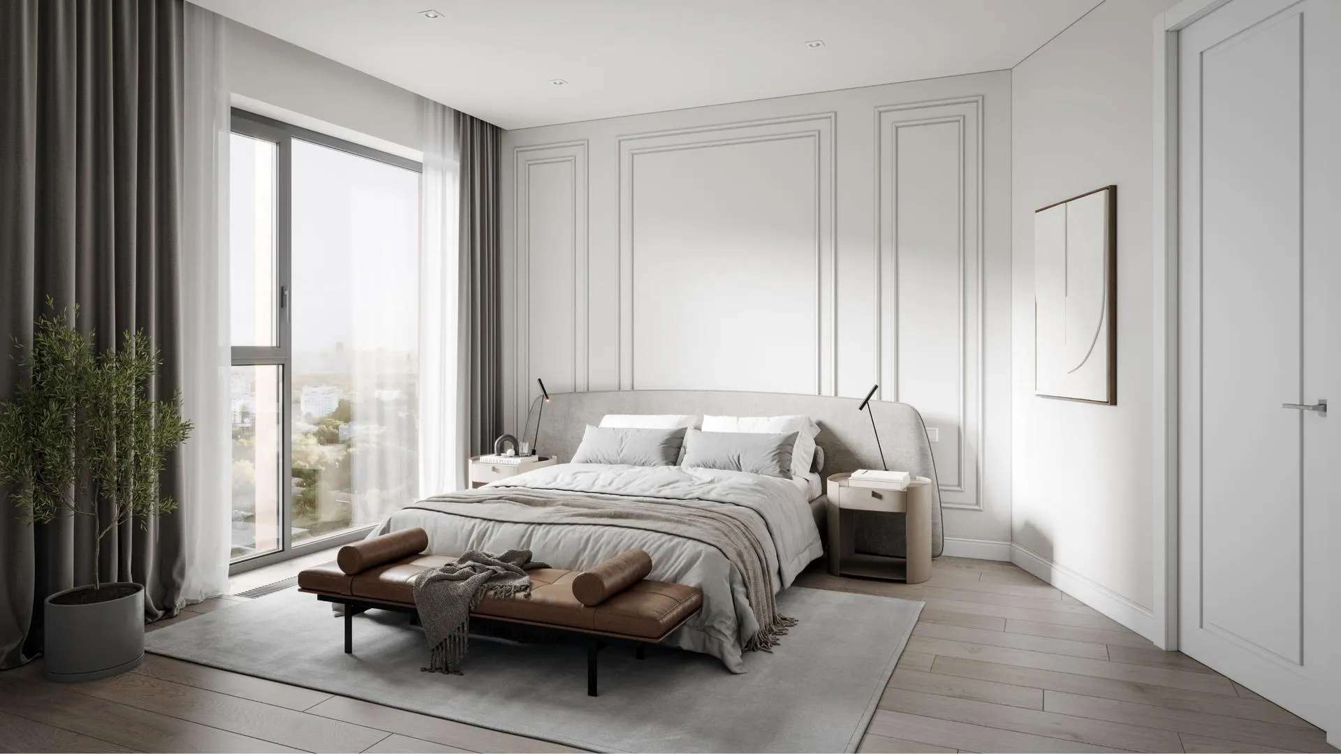 Квартиры сдаются без отделки, что дает свободу для дизайнерских решений. Многие лоты уже имеют продуманные ниши для гардеробных, а в двухкомнатных и более вариантах предусмотрены мастер-спальни с собственным санузлом.