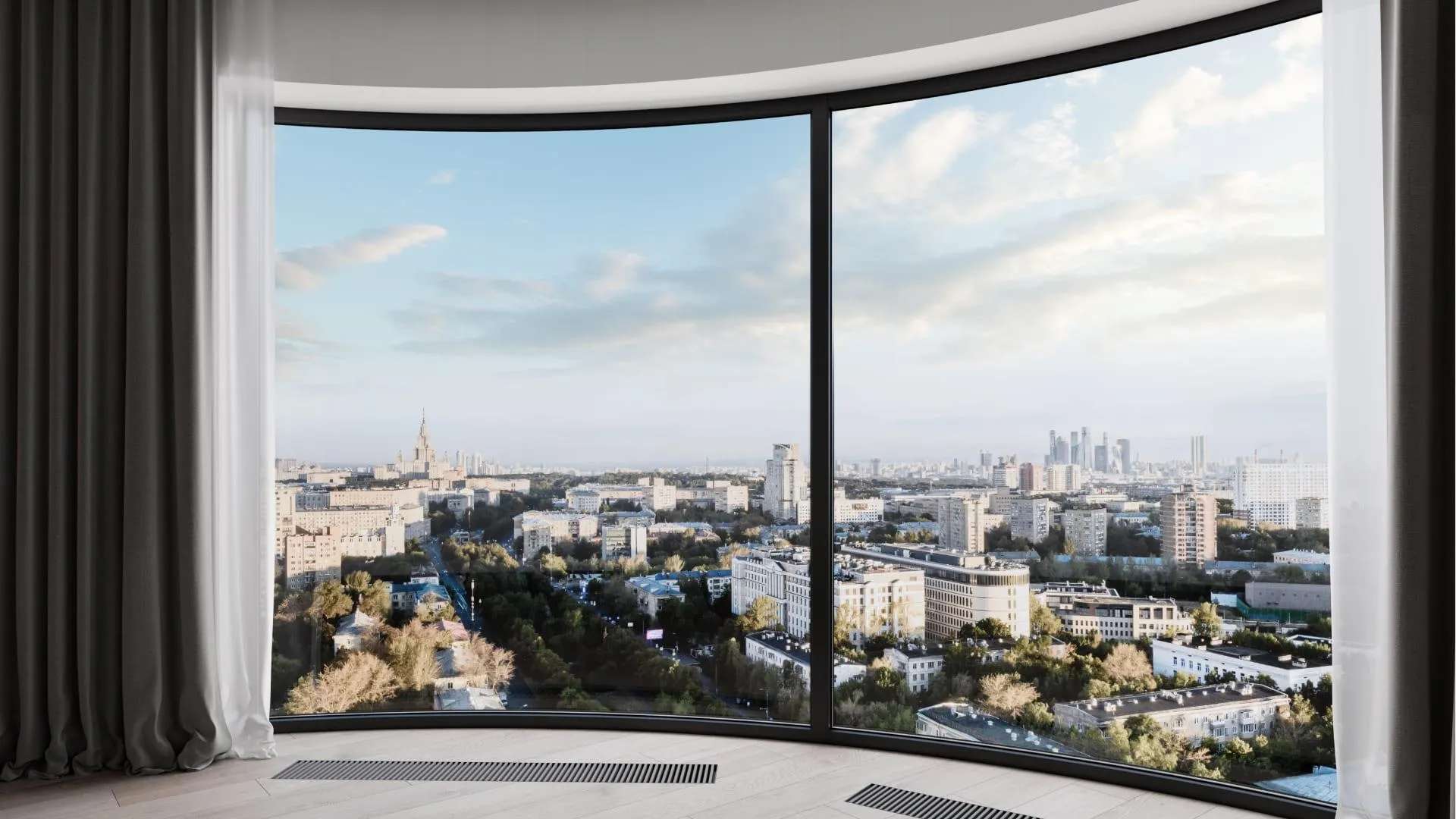 Проект отличается своей камерностью: всего 291 квартира, что обеспечивает комфортное соседство и приватность. Здание имеет сложную треугольную форму, благодаря чему из окон открываются панорамные виды на город, включая перспективу на Воробьевы горы и МГУ.