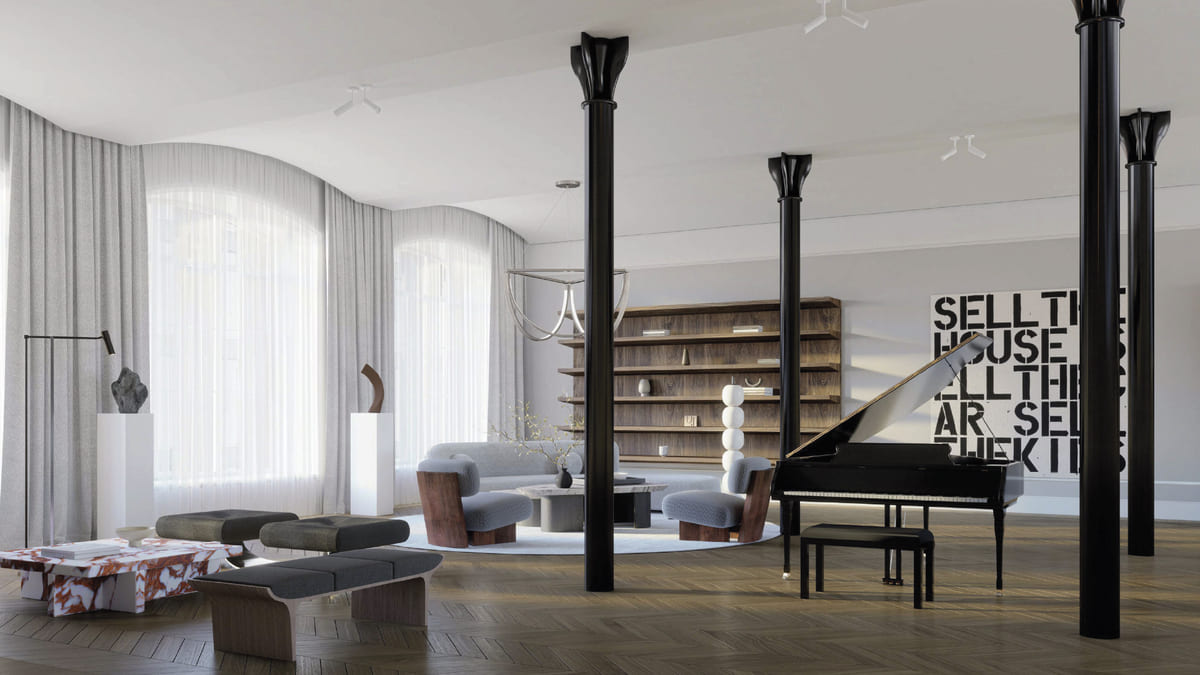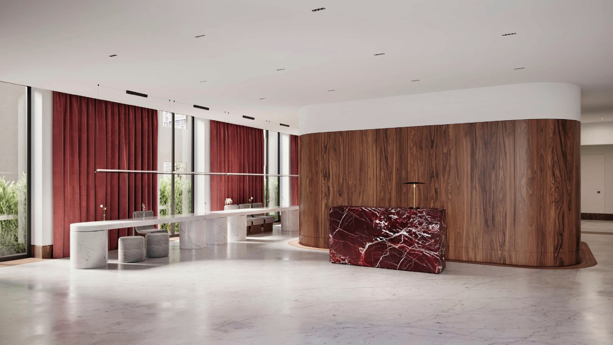 Интерьер лобби подчеркивают дизайнерская мебель, уникальные декоративные элементы и авторское освещение. Для удобства жителей предусмотрены отдельные зоны ожидания и отдыха, создающие атмосферу приватности и уюта.
