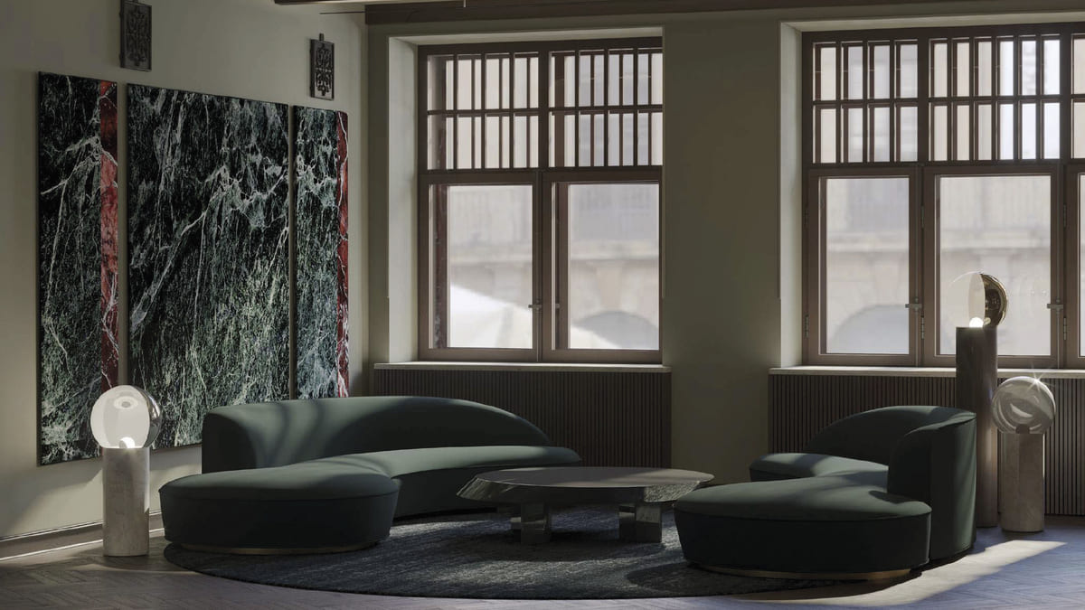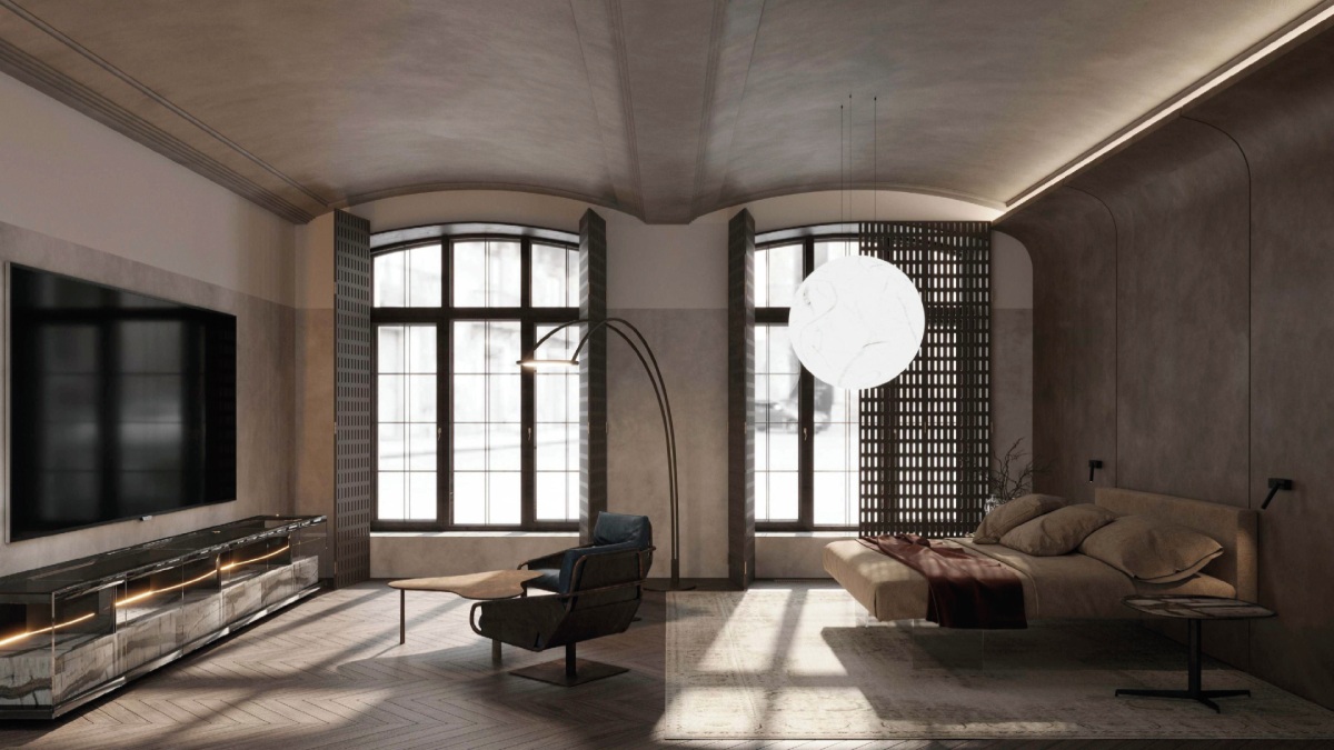 Парадное пространство выдержано в эстетике роскошного бутик-отеля.