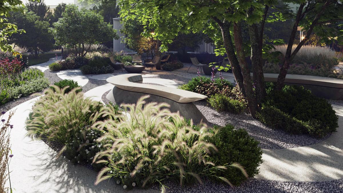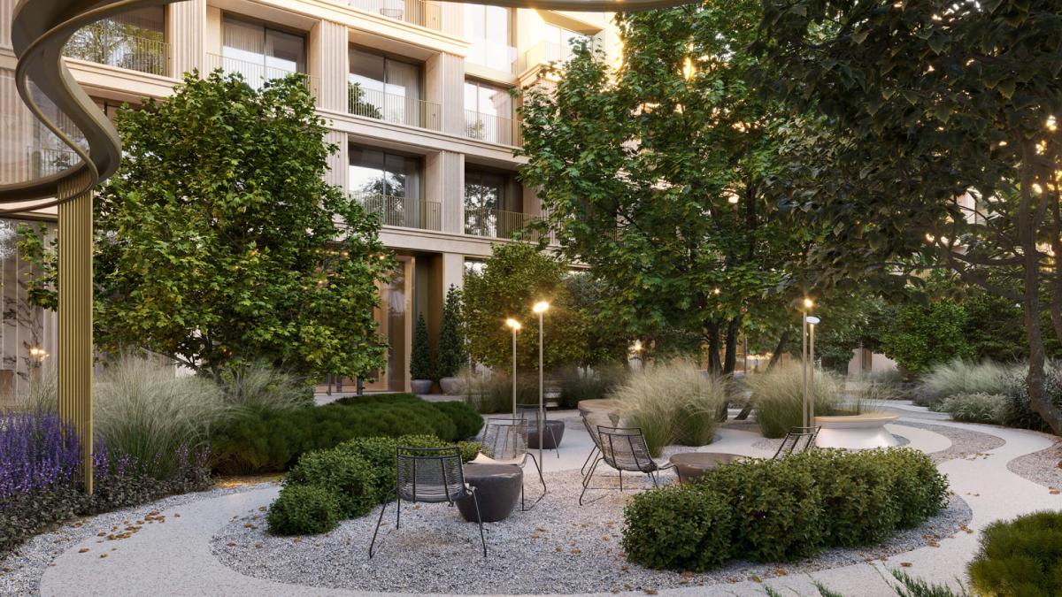 Сердце внутреннего двора LUCE – секретный сад, скрытый от посторонних глаз. В нём высажены адаптированные к московскому климату растения из России и Италии.