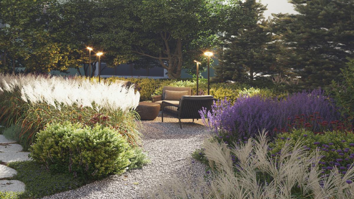 На закрытой территории – продуманное благоустройство с lounge-зонами, детской площадкой и уникальным элементом – приватным садом.