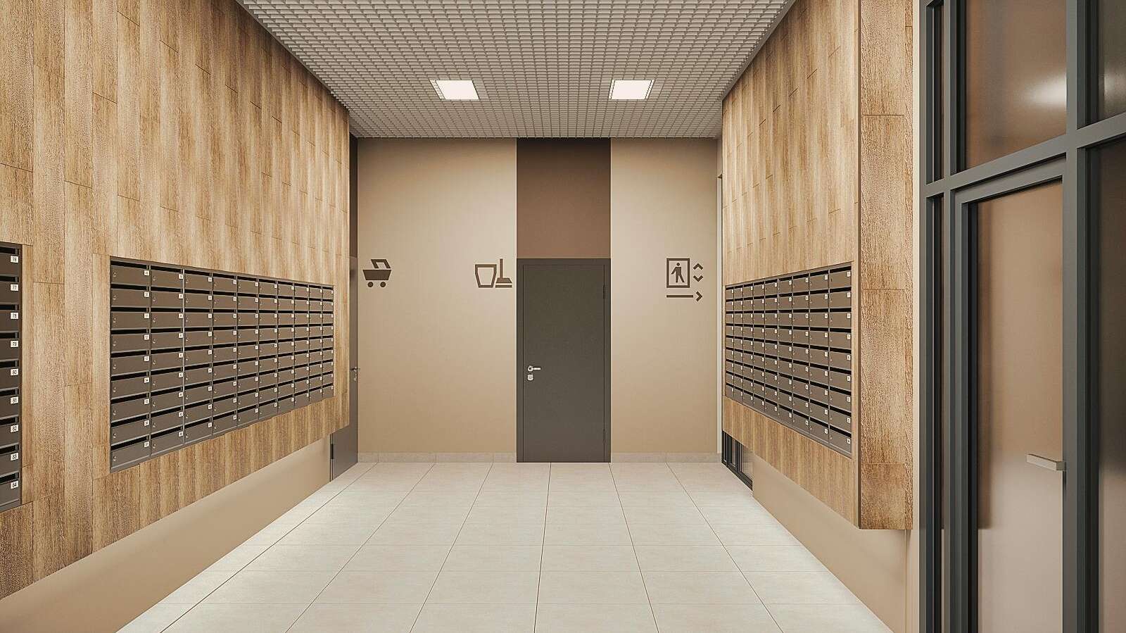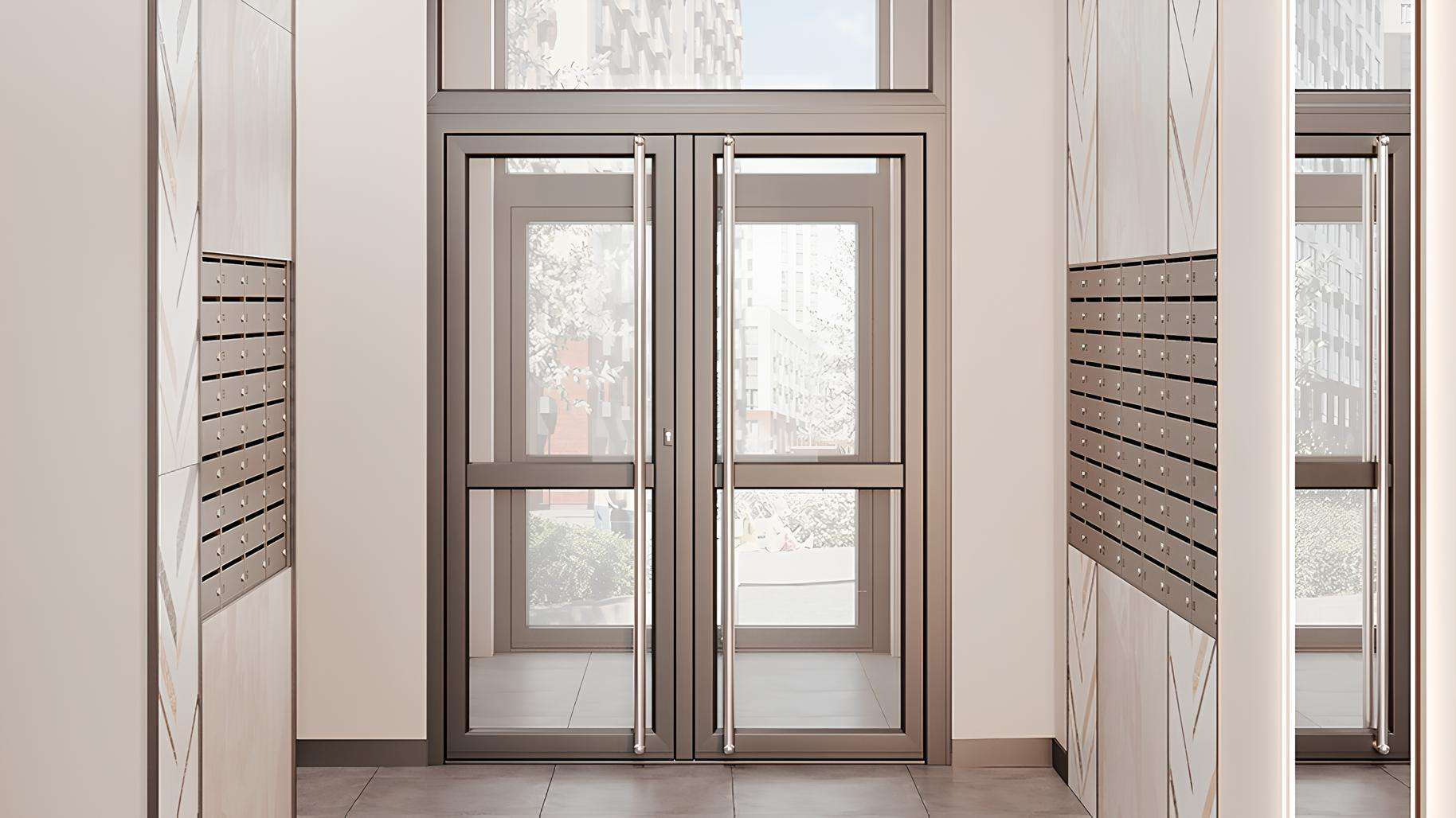 Входные группы каждого подъезда оформлены как современные гостевые пространства. Дизайнерская мебель в стиле неоклассики создает уютную атмосферу для жителей и гостей.
