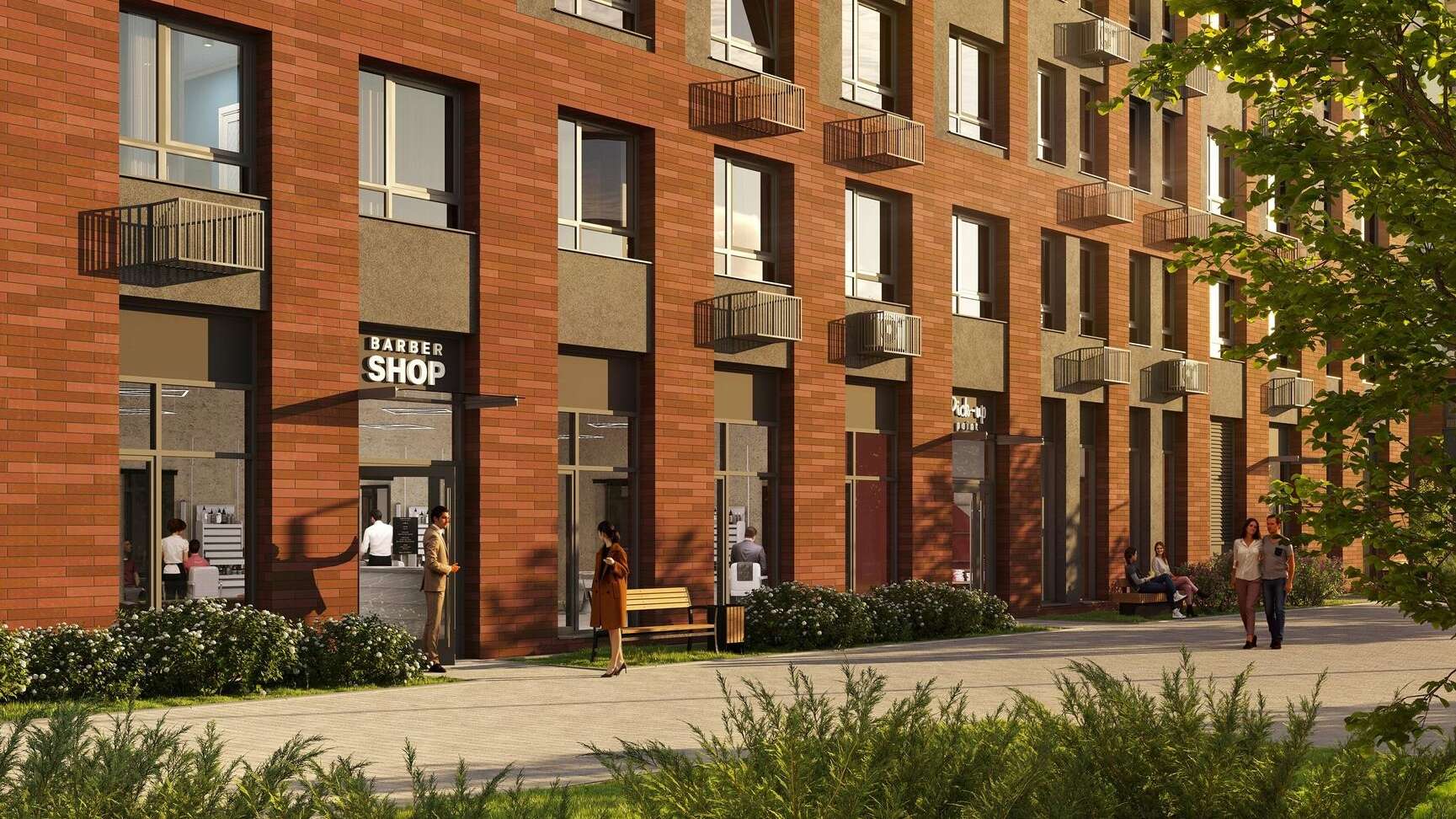 На территории комплекса создается полноценная инфраструктура для комфортной жизни. В шаговой доступности расположены детские сады, школы, поликлиники и торговые центры. На первых этажах корпусов запроектированы помещения для аптек, кафе, салонов красоты и фитнес-центра.