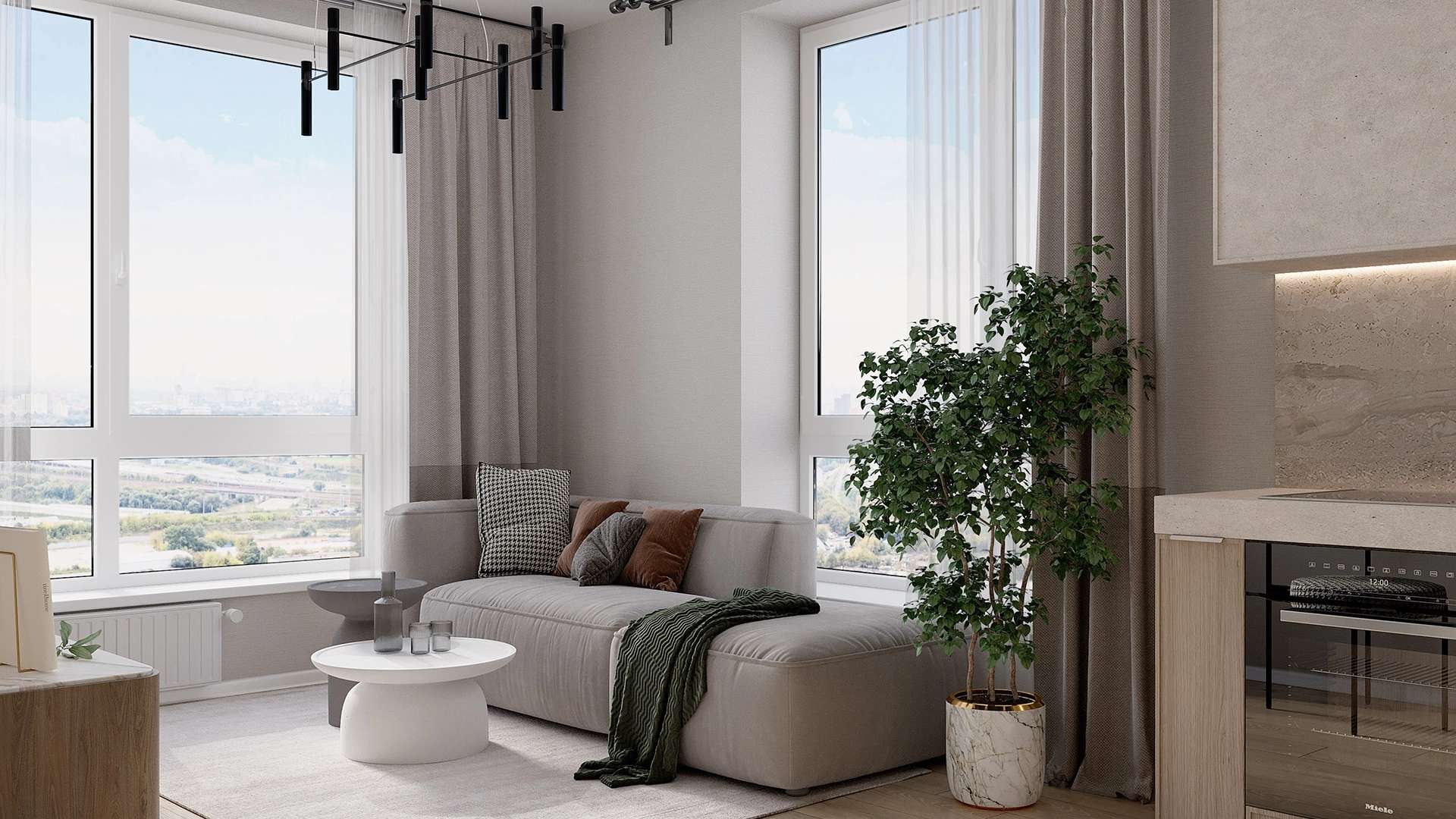 Панорамное остекление лоджий и балконов обеспечивает максимальное естественное освещение помещений. Продуманное расположение корпусов позволяет солнцу наполнять квартиры в течение всего дня.