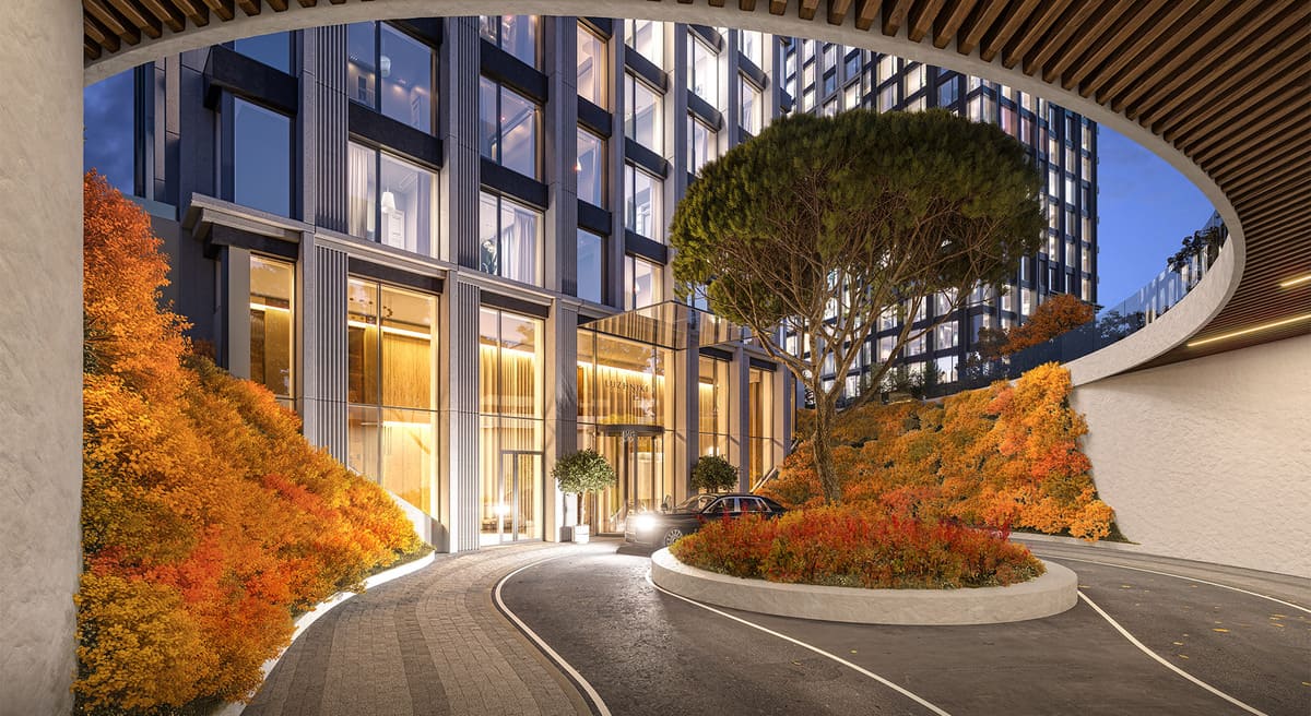 Подъезд к парадному лобби выполнен в лучших традициях пятизвёздочных отелей. Представьте, как вы, не выходя из машины, попадаете в великолепное лобби через тёплый паркинг. Есть как открытые, так и закрытые зоны для высадки, а подогреваемые пешеходные дорожки обеспечивают комфорт в любое время года.