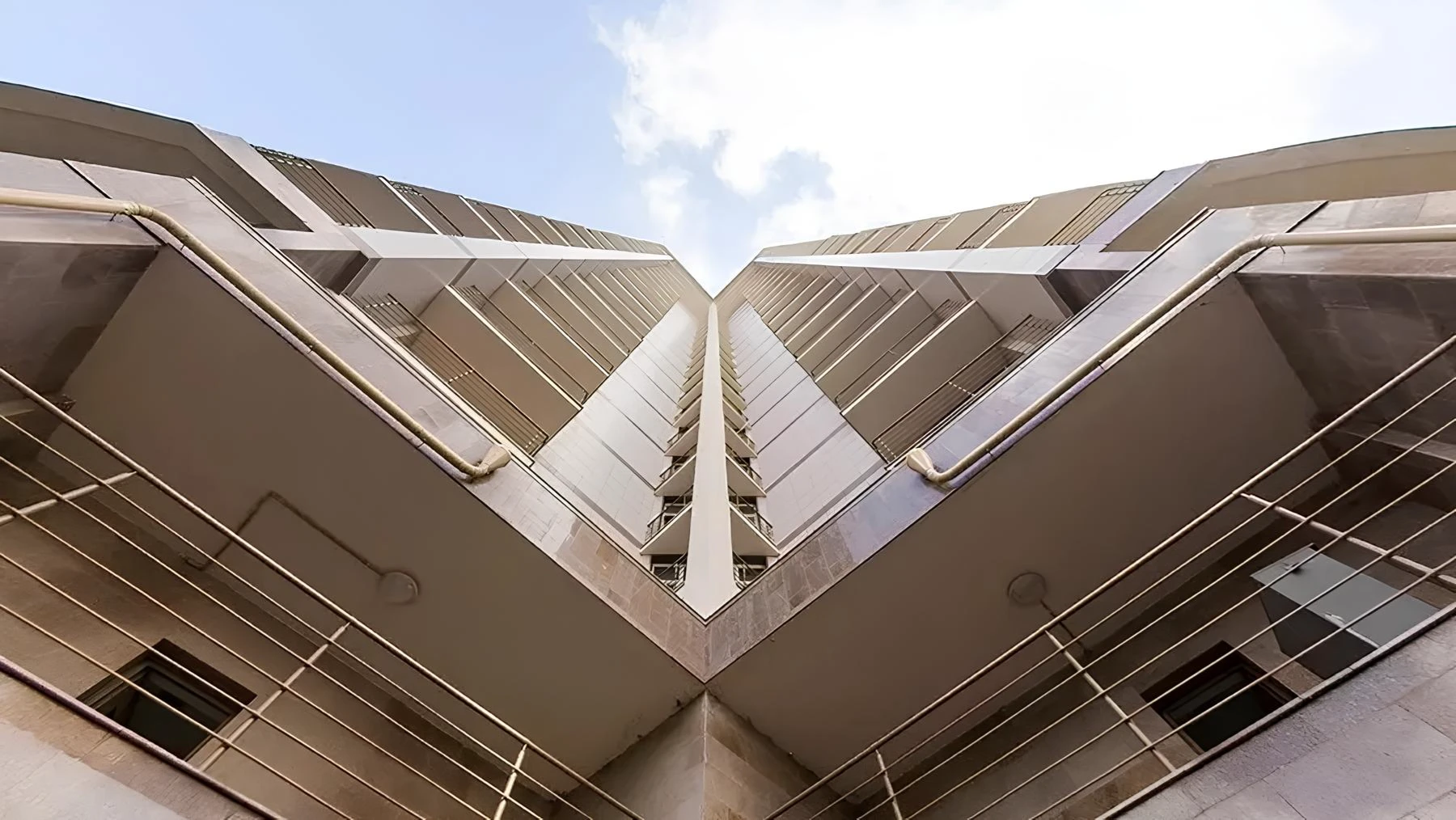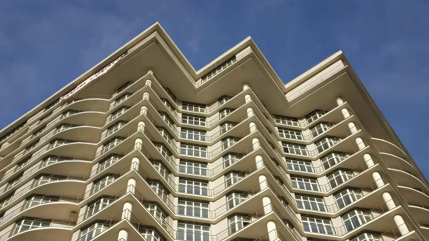 Панорамное остекление, которым оснащена каждая квартира, не только наполняет интерьеры естественным светом, но и открывает жителям прекрасные виды на достопримечательности столицы. Массивный нависающий карниз, опирающийся на колонны, венчает здание, добавляя его облику монументальности.