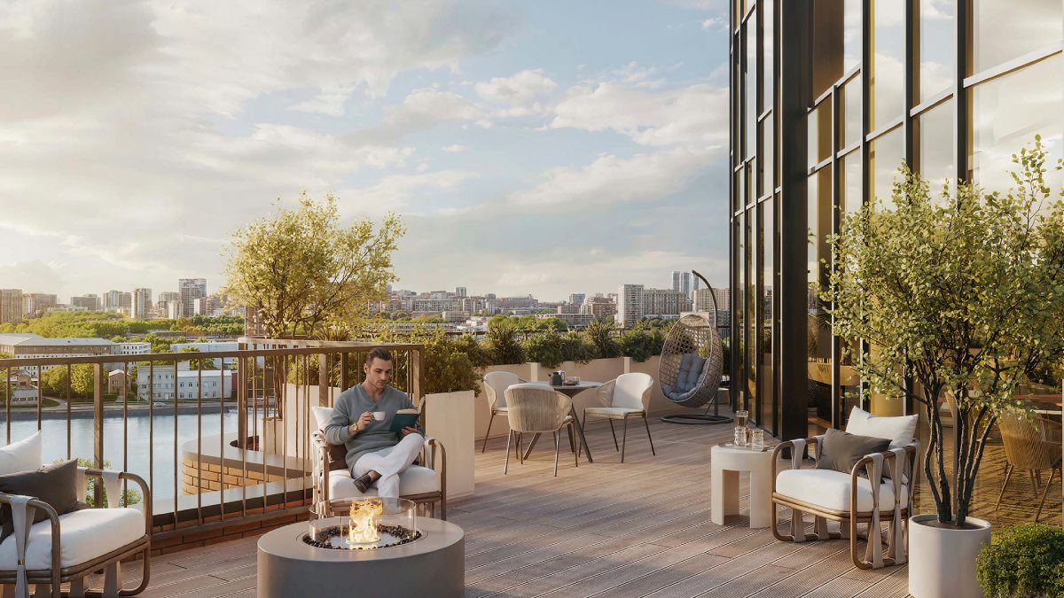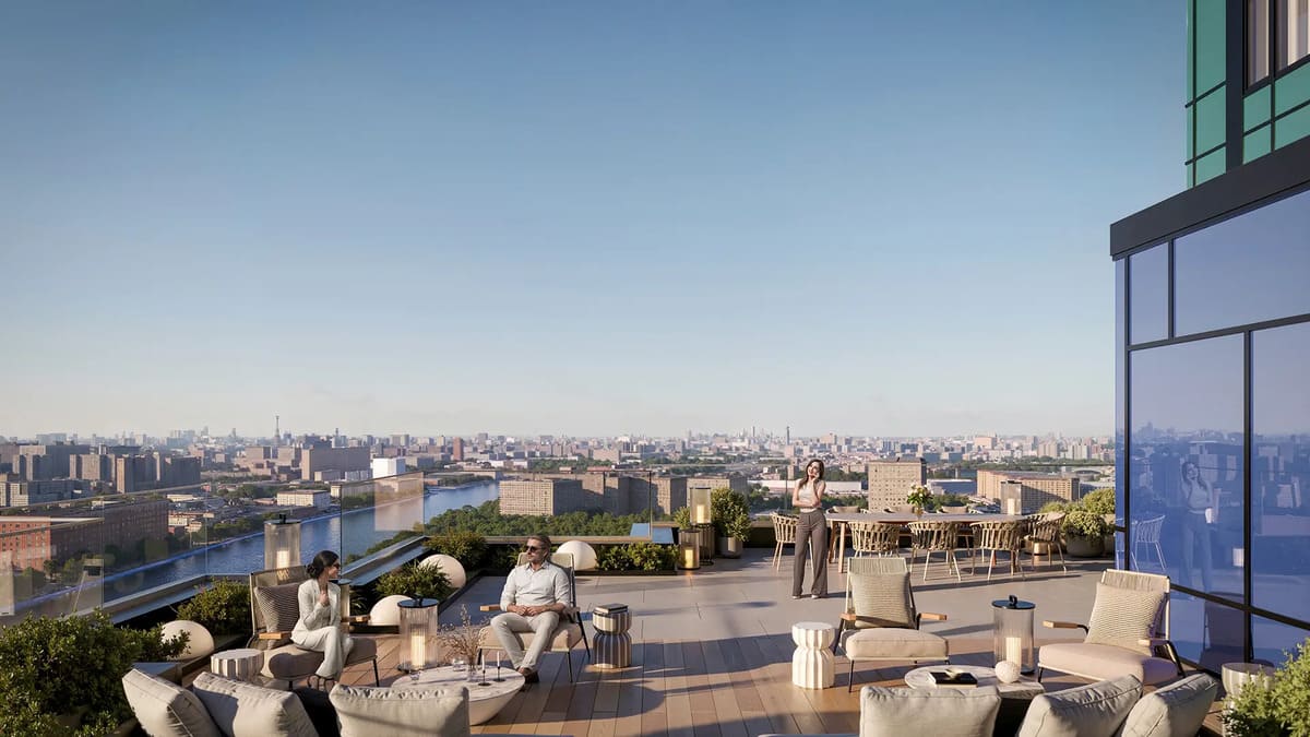 На 35 этаже организовано эксклюзивное lounge-пространство для резидентов: терраса, панорамный вид, кофейный уголок, игровое пространство для детей и места для отдыха.