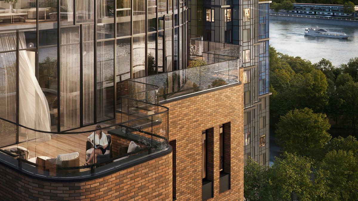 Три корпуса высотой 12, 18 и 43 этажа образуют вертикальный ансамбль, венчаемый террасой на 35 этаже с видами на столицу.