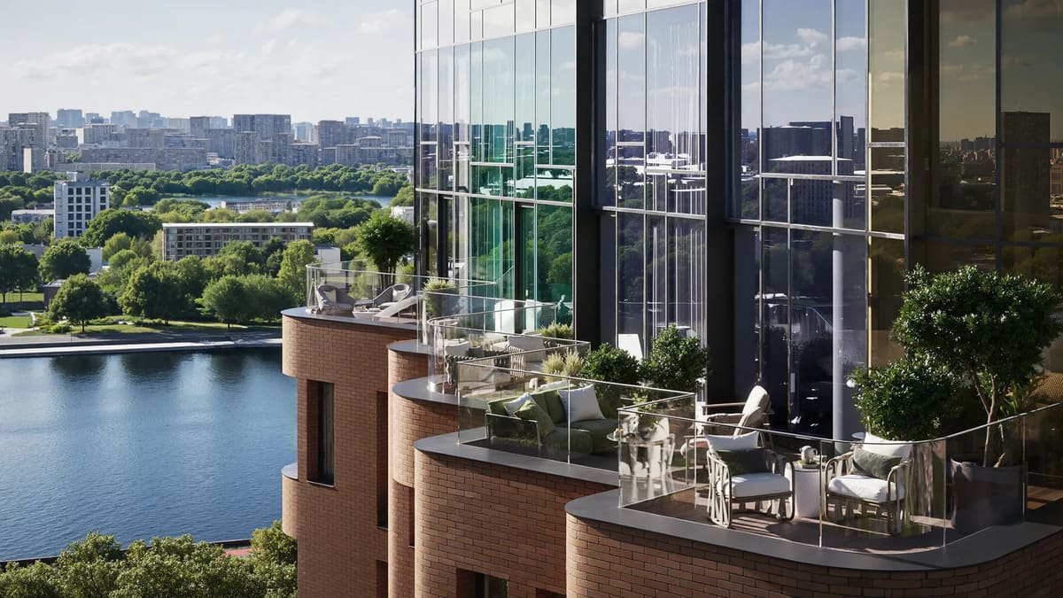 В проекте предусмотрены эксклюзивные форматы: квартиры с открытыми террасами, а также двухуровневые апартаменты с видовыми панорамами.