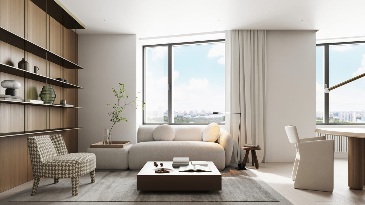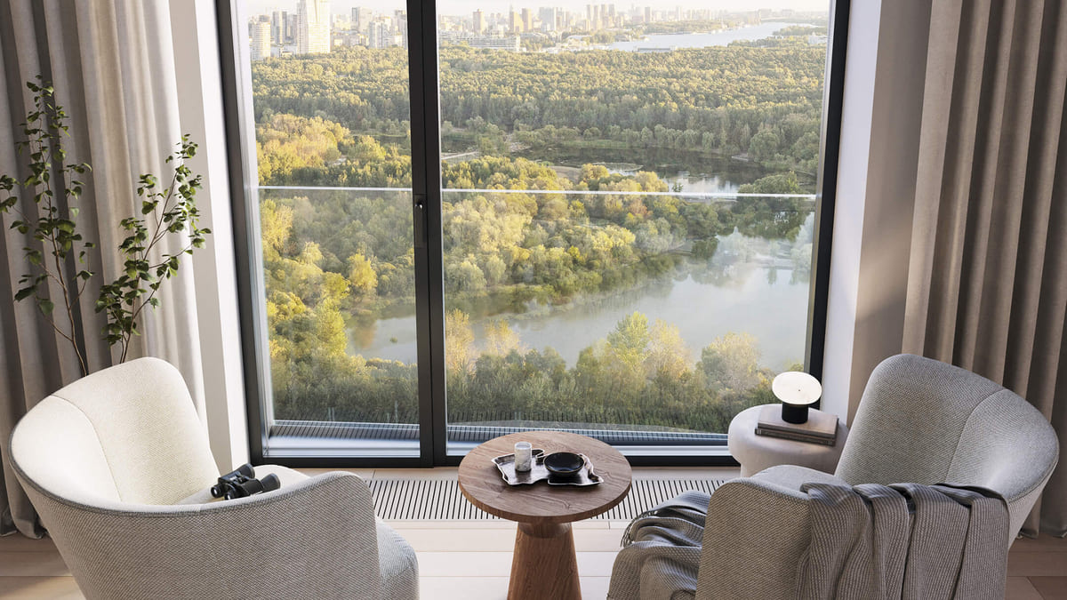 Функциональные планировки, качественные инженерные решения и панорамные окна с зелёными видами задают основную эстетику пространства – сдержанную, спокойную, удобную для жизни.
