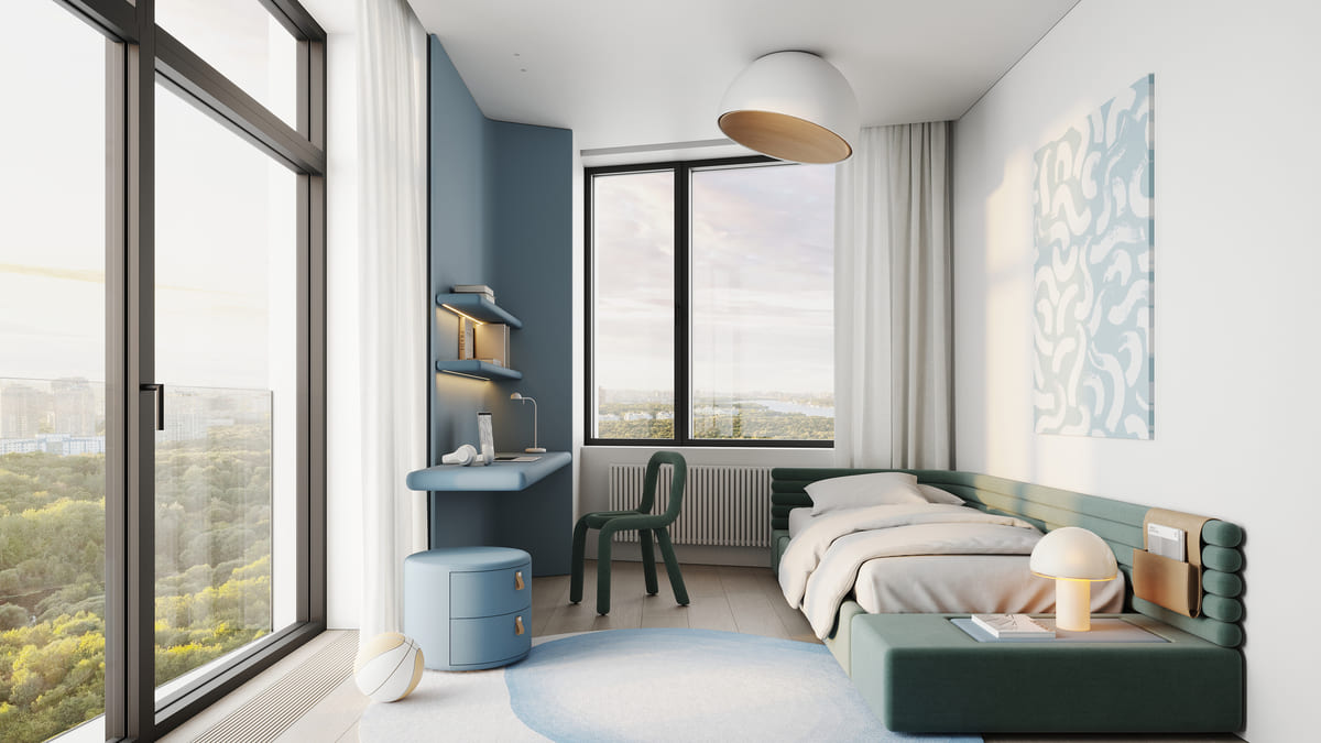 Планировочная линейка охватывает студии от 24,6 м² до просторных семейных лотов с мастер-спальнями и гардеробными. Квартиры сдаются в отделке White Box, что открывает возможность для индивидуального дизайна без переплаты за чужие решения.
