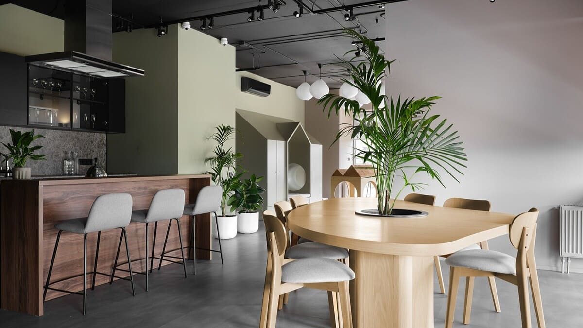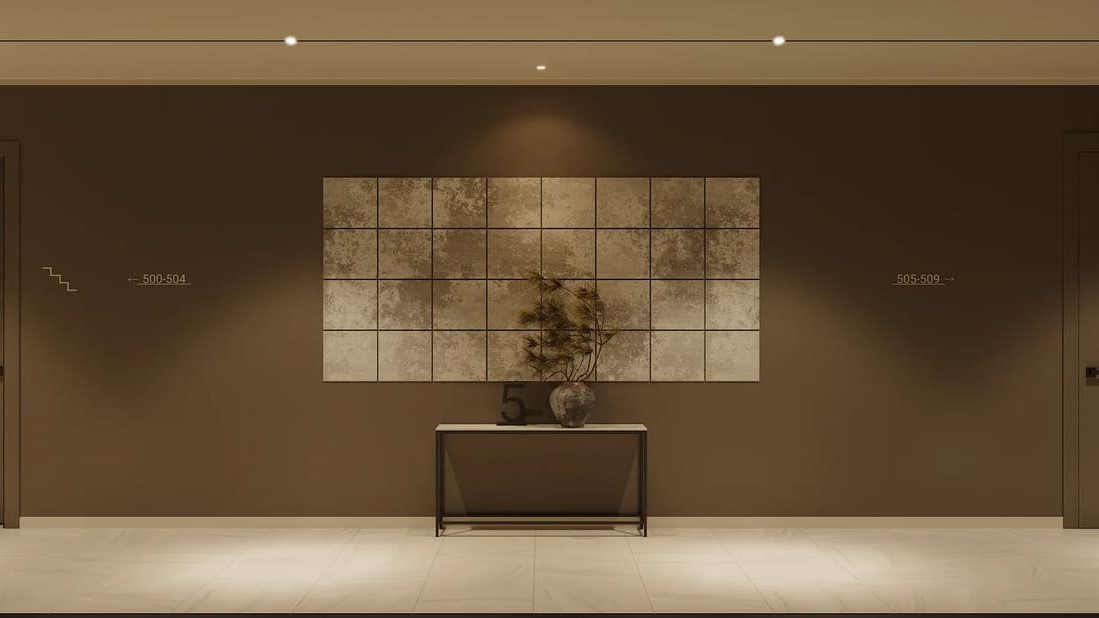На первом этаже каждого корпуса предусмотрены общественные гостиные – с диванами, торшерами, зеленью и картинами. Идеальное пространство для отдыха, общения или ожидания.