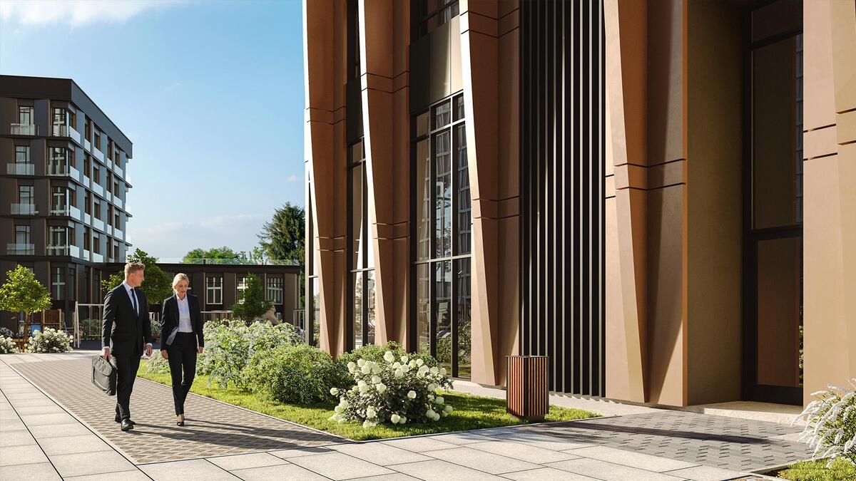 Внутреннее пространство квартала спроектировано с учётом современных стандартов: здесь есть игровые площадки для детей разных возрастов, зоны воркаута и места для спокойного отдыха.
